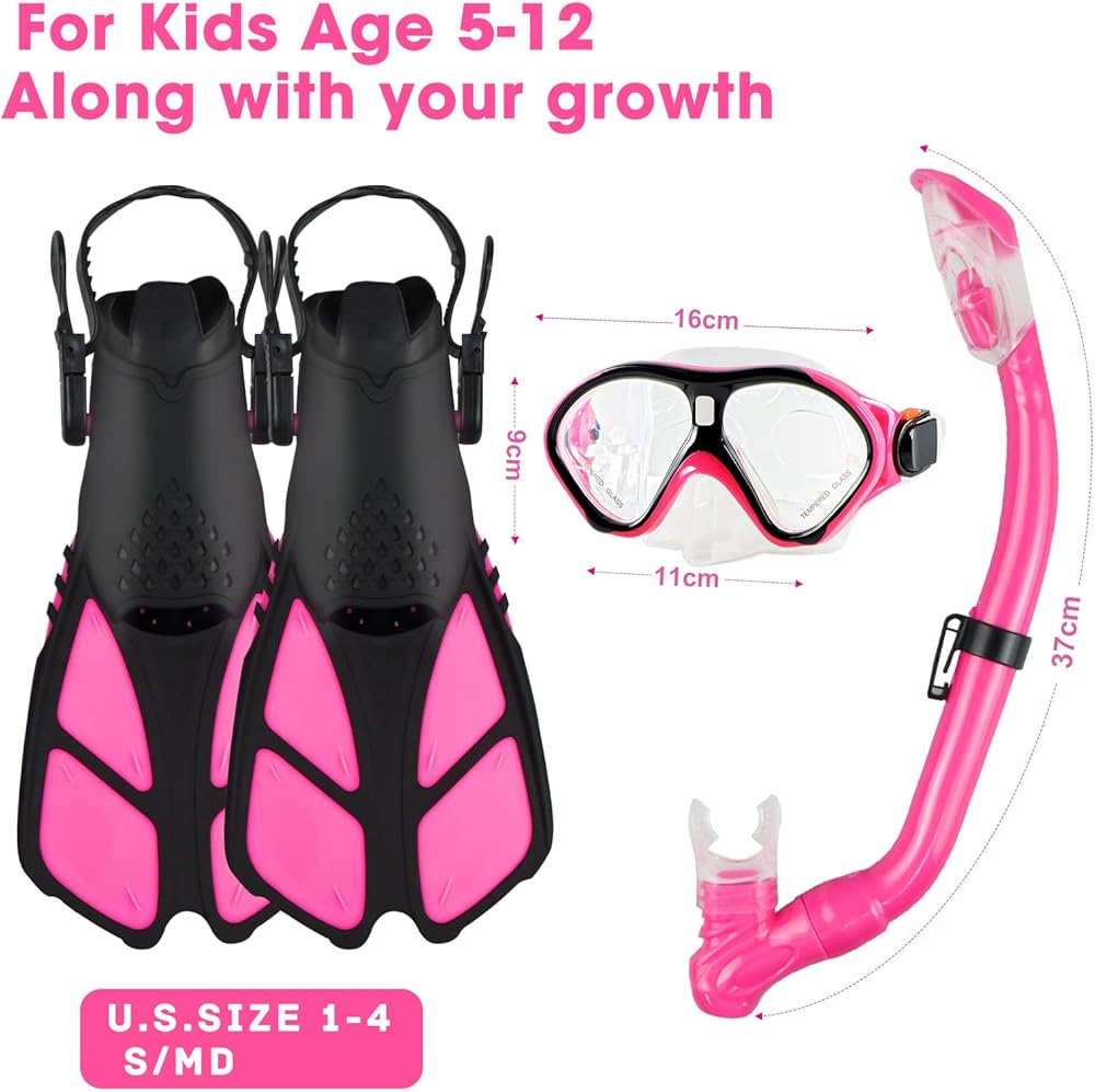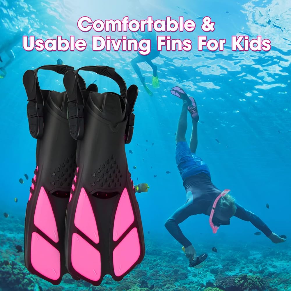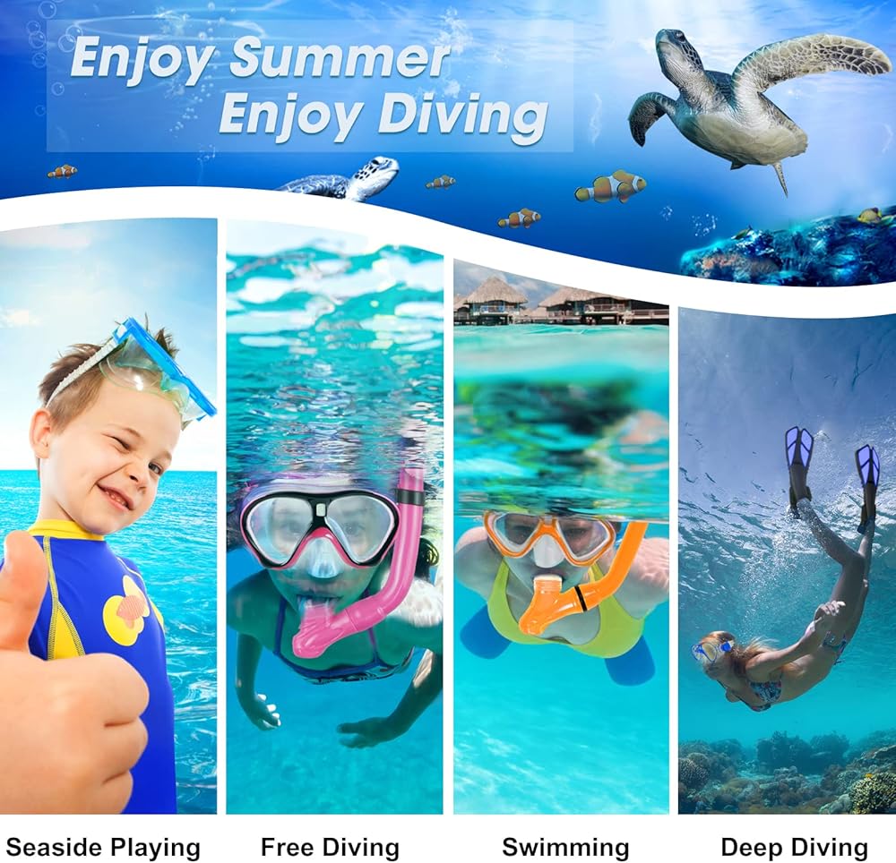 【آمنة وسهلة الاستخدام】مجموعة غطس احترافية للأطفال مصممة للأطفال من سن 5 إلى 12 عامًا، آمنة وسهلة الاستخدام في مجموعة الغطس هذه الكل في واحد. يحمي الغطس العلوي الجاف أطفالك من التنفس بأمان، وتساعد الزعانف العريضة الأطفال على السباحة بشكل أسرع وأسهل، وسيساعد قناع الغطس الأطفال على استكشاف عالم تحت الماء بشكل أكثر وضوحًا. سيحب أطفالك السباحة مع مجموعة الغطس للأطفال.