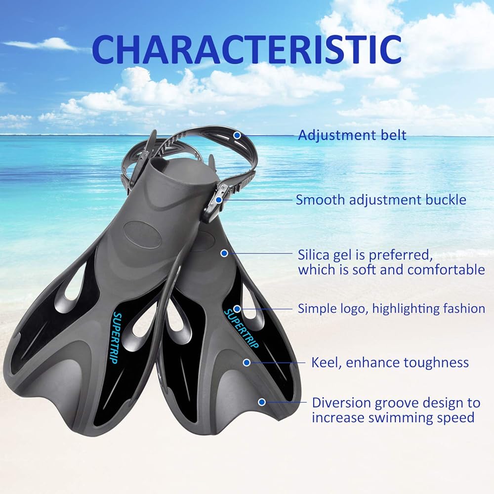 مجموعة غطس Supertrip مع زعانف مقاومة للصدمات من الزجاج المقسى وقناع غطس مضاد للضباب - زعانف سباحة للغوص / زعانف - قمة جافة متضمنة مجموعة غطس وزعانف غطس بكعب مفتوح