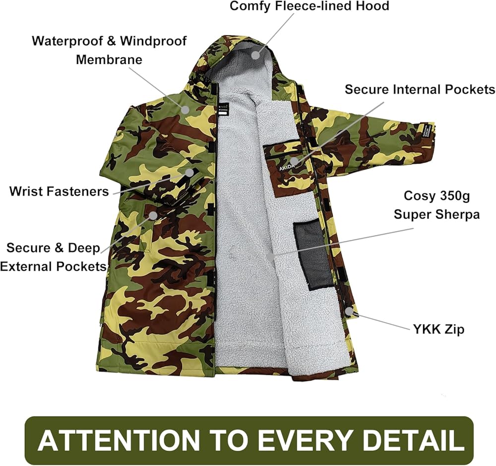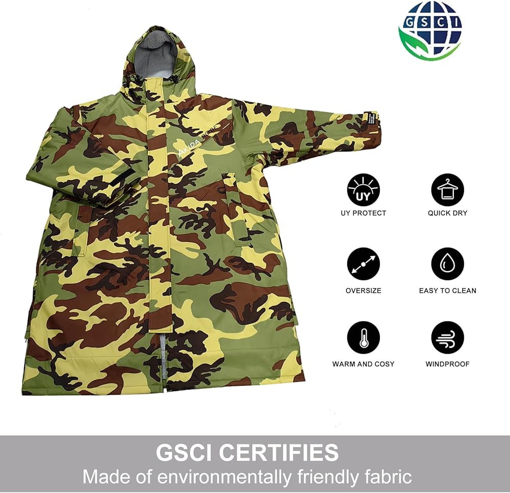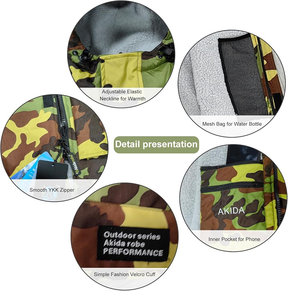 【رداء تغيير الملابس في الهواء الطلق: رداء Akida المتغير هو رداء كبير الحجم، والطبقة الخارجية المقاومة للماء والرياح بنسبة 100% تبقى جافة، وتظل البطانة الصوفية دافئة. معدات لتغيير الرياضة والسباحة وركوب الأمواج والشاطئ والتخييم.
