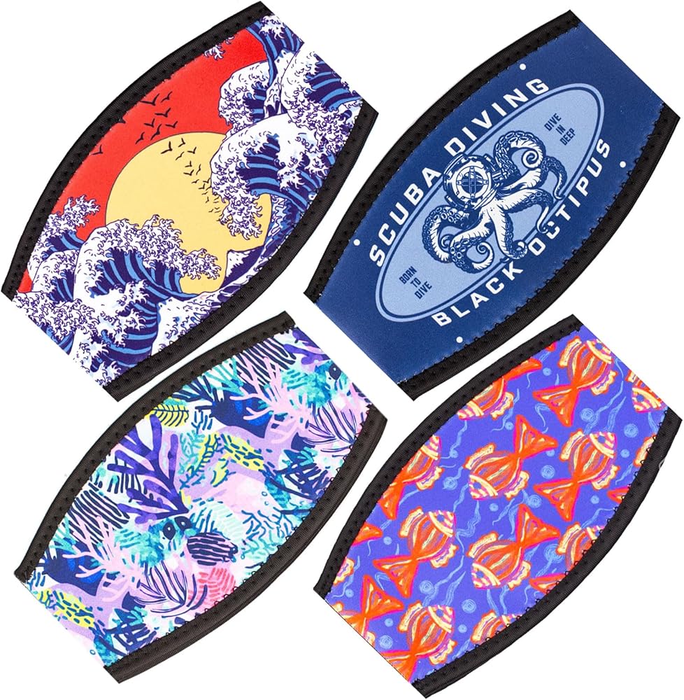 • [تصميم لافت للنظر] ترتبط التصميمات الأربعة ذات الطراز القديم بالغوص والأمواج والسكوبا والأخطبوط وحمام السباحة. الأنماط العصرية والألوان الزاهية تسمح لك بالتعرف بسرعة على غطاء حزام الغطس الخاص بك، سيكون هذا منتجًا محبوبًا للغواصين.