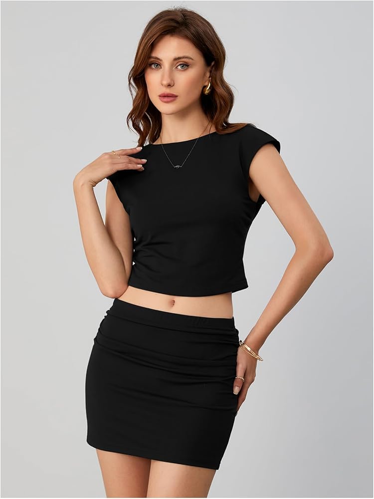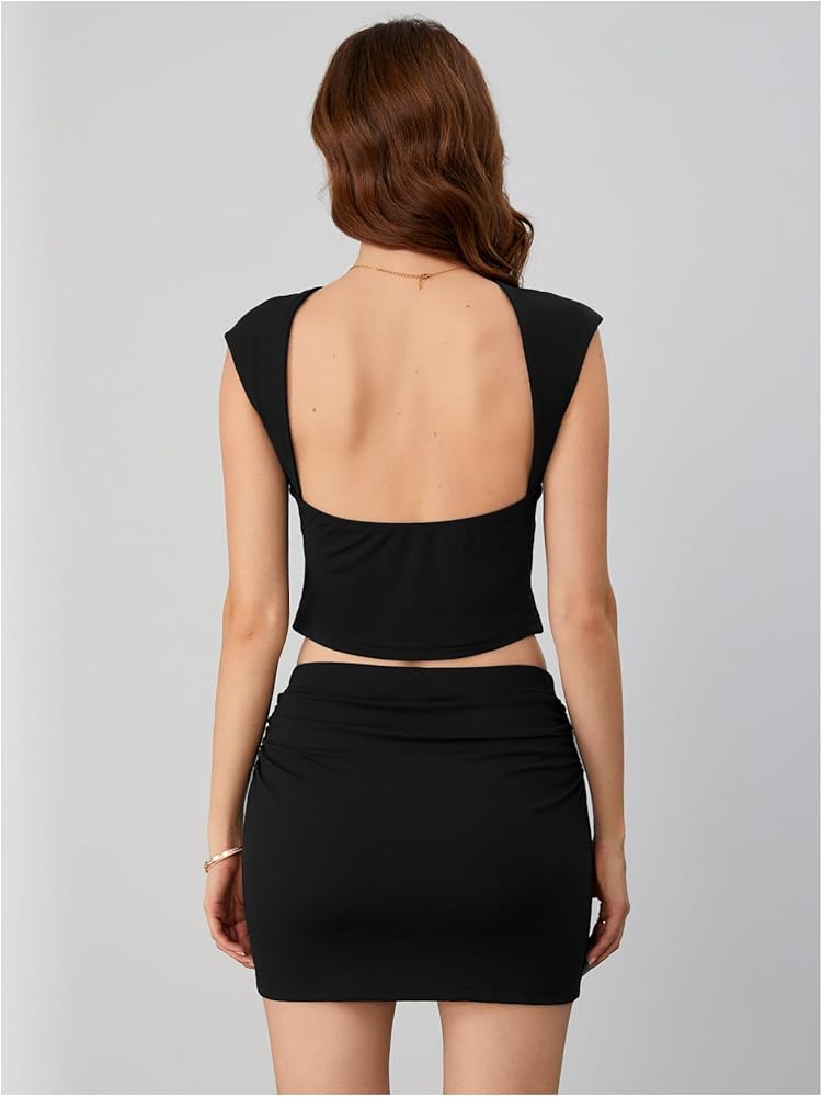 ملابس Verdusa النسائية المكونة من قطعتين، تي شيرت قصير بأكمام قصيرة مكشوفة الظهر وتنورة ضيقة مكشكشة