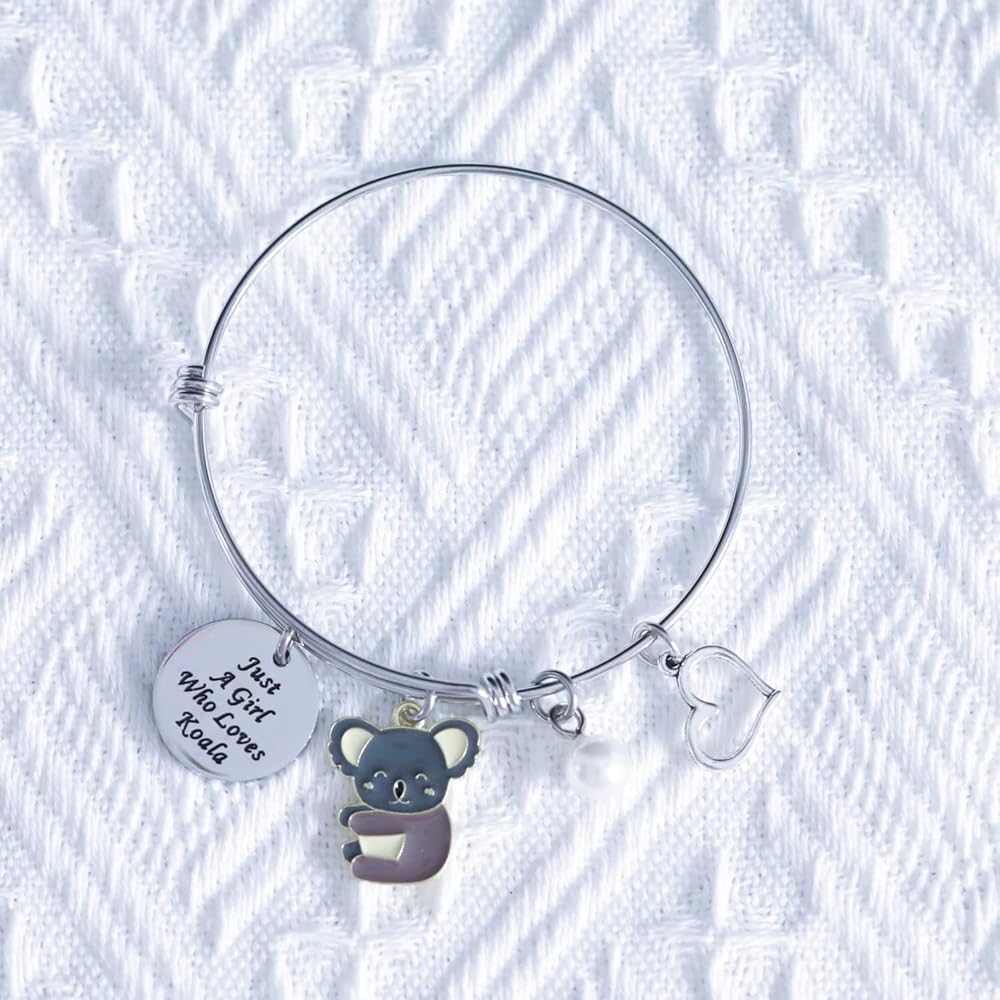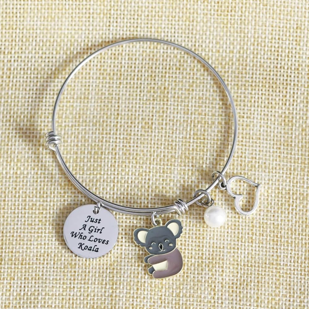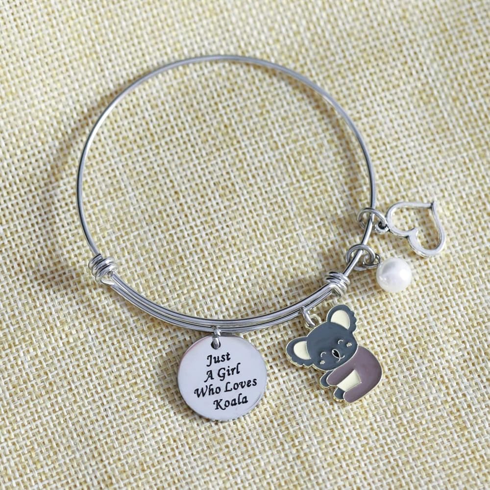 • ❥ ❥-Engraved "Just A Girl Who Loves Koala".Koalas are Australia's national treasures. They sleep longer than awake. Koalas make us feel comfortable and enjoy life. Give this bracelet to your friends who are lazily enjoying life! Makes a lovely gift for best friends, sister, girlfriend an her birthday or Christmas present to celebrate that special day in your life!