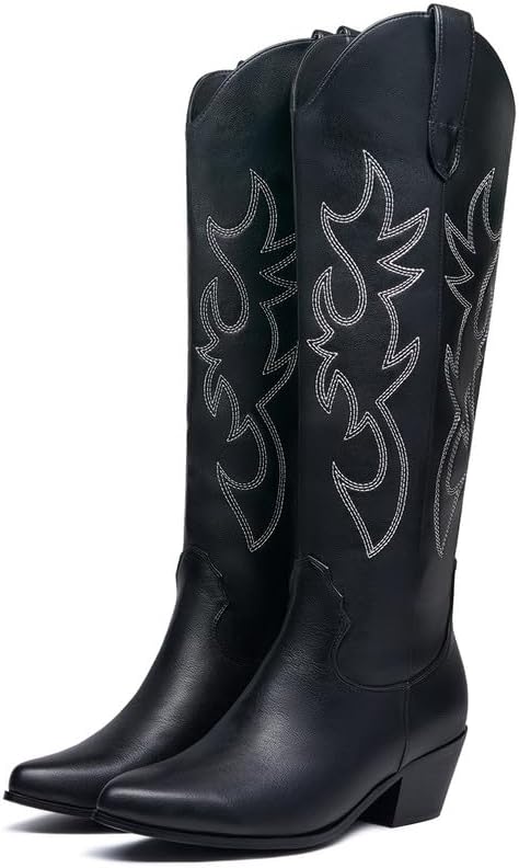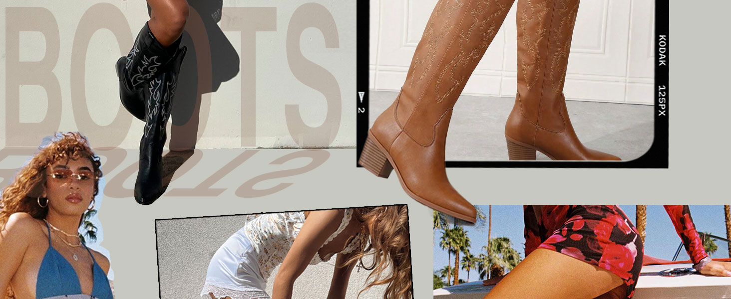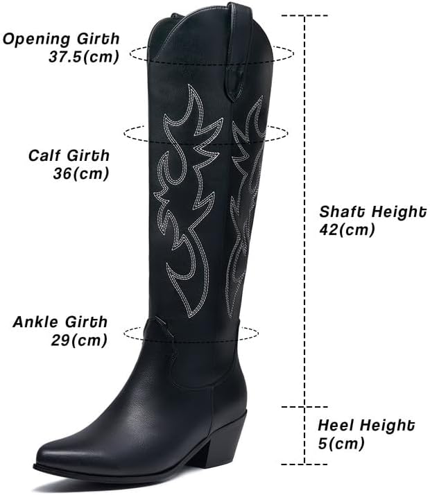 👢نمط متعدد الاستخدامات: يمكن ارتداء أحذية رعاة البقر السوداء هذه لأعلى أو أسفل، مما يجعلها إضافة متعددة الاستخدامات لأي خزانة ملابس. تبدو رائعة مع الجينز أو التنانير أو الفساتين والسراويل القصيرة والسراويل والفساتين والسترات والمعاطف وكل ما يخطر ببالك. وهذا يجعلك أكثر عصرية وساحرة.