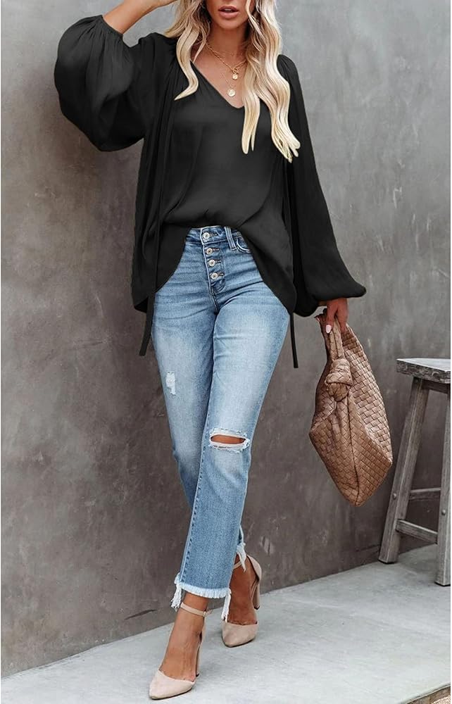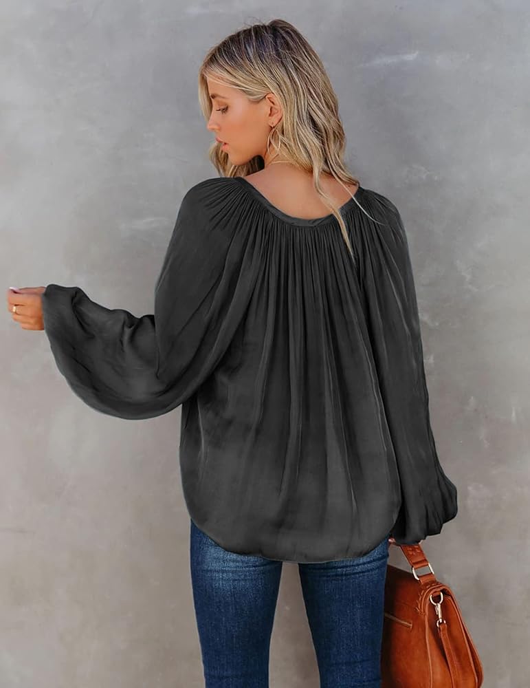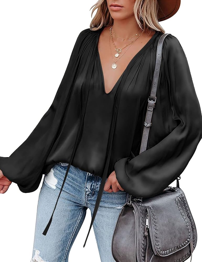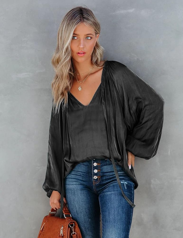 قمصان الموضة: تتميز القمصان الساتان بتصميم أنيق وأنيق، مع فانوس بأكمام طويلة لإخفاء الدهون الزائدة بصريًا وجعل الجزء العلوي من الجسم أنحف؛ رقبة عميقة على شكل حرف V مع رباط، يمكنك اختيار ربطها أم لا، كل شيء مثير؛ يتميز الجزء العلوي الكاجوال بلمسة مطوية، ويأخذ مظهرك إلى المستوى التالي؛ بلوزة فضفاضة مناسبة للارتداء قطعة أثرية.