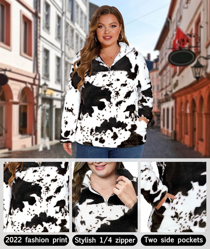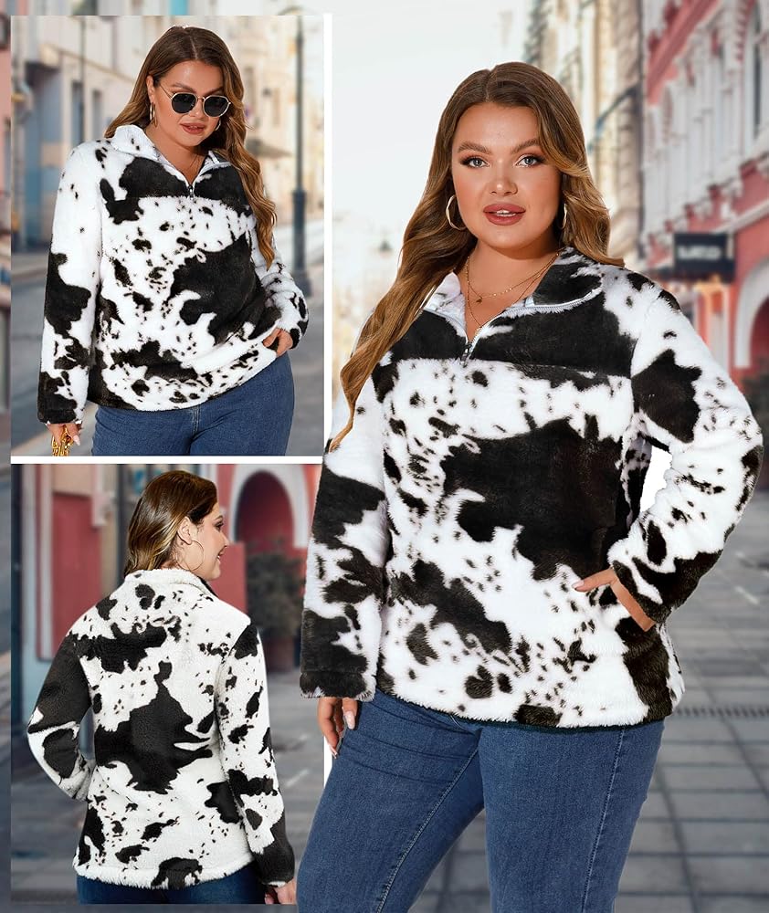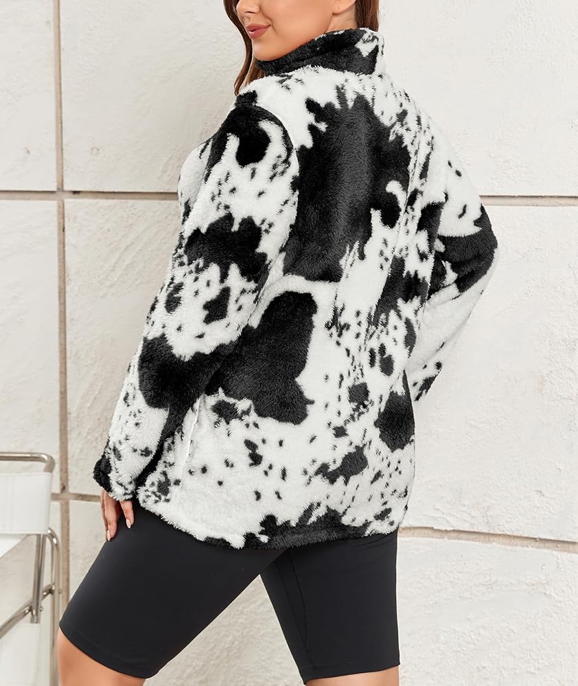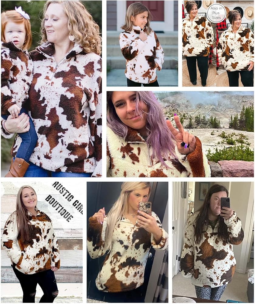 تصميم فريد من نوعه - يتميز المعطف الخارجي ذو الأكمام الطويلة والمقاس الكبير بطباعة بقرة عصرية لعام 2023، وسويت شيرت من النوع الثقيل، وياقة طية صدر السترة، وسحاب 1/4 يمكن سحابه لأعلى أو لأسفل لارتداء متعدد الاستخدامات وتحديث مظهرك اليومي. كم طويل، طراز كاجوال، جيبان جانبيان عميقان يساعدان على حمل هاتفك أو مفاتيحك بشكل مريح. سوف تكون النجم المتلألئ بين الحشود مع سويت شيرت من صوف الشيربا بطبعات البقرة.