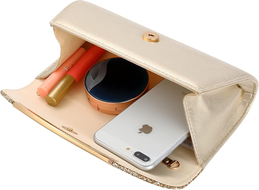مساحة كافية لأشيائك الثمينة، مثل الهاتف الخلوي، والمحفظة الصغيرة، والمرآة، وأحمر الشفاه، والمكياج، والنقود، وبطاقة الائتمان، ومفاتيح السيارة، وما إلى ذلك. مثالية لعطلات نهاية الأسبوع، وحفلات الزفاف، والحفلات المسائية، والحفلات الموسيقية، وحفلات الكوكتيل المختلفة، والسهرات أو المناسبات الرسمية وهكذا.