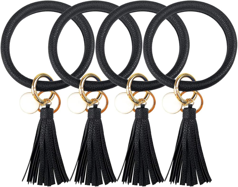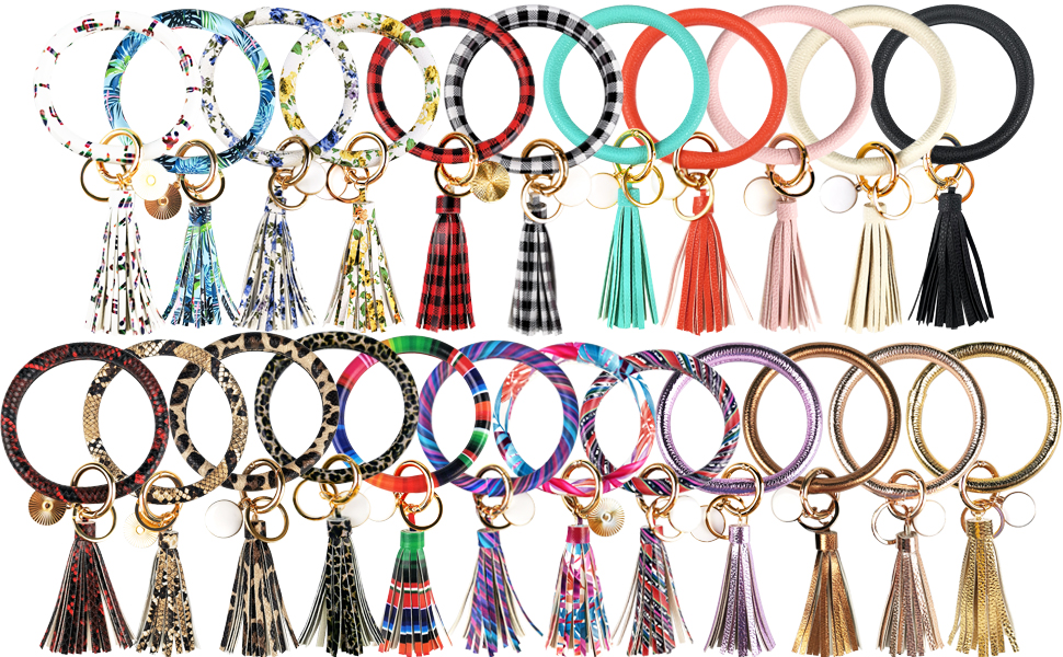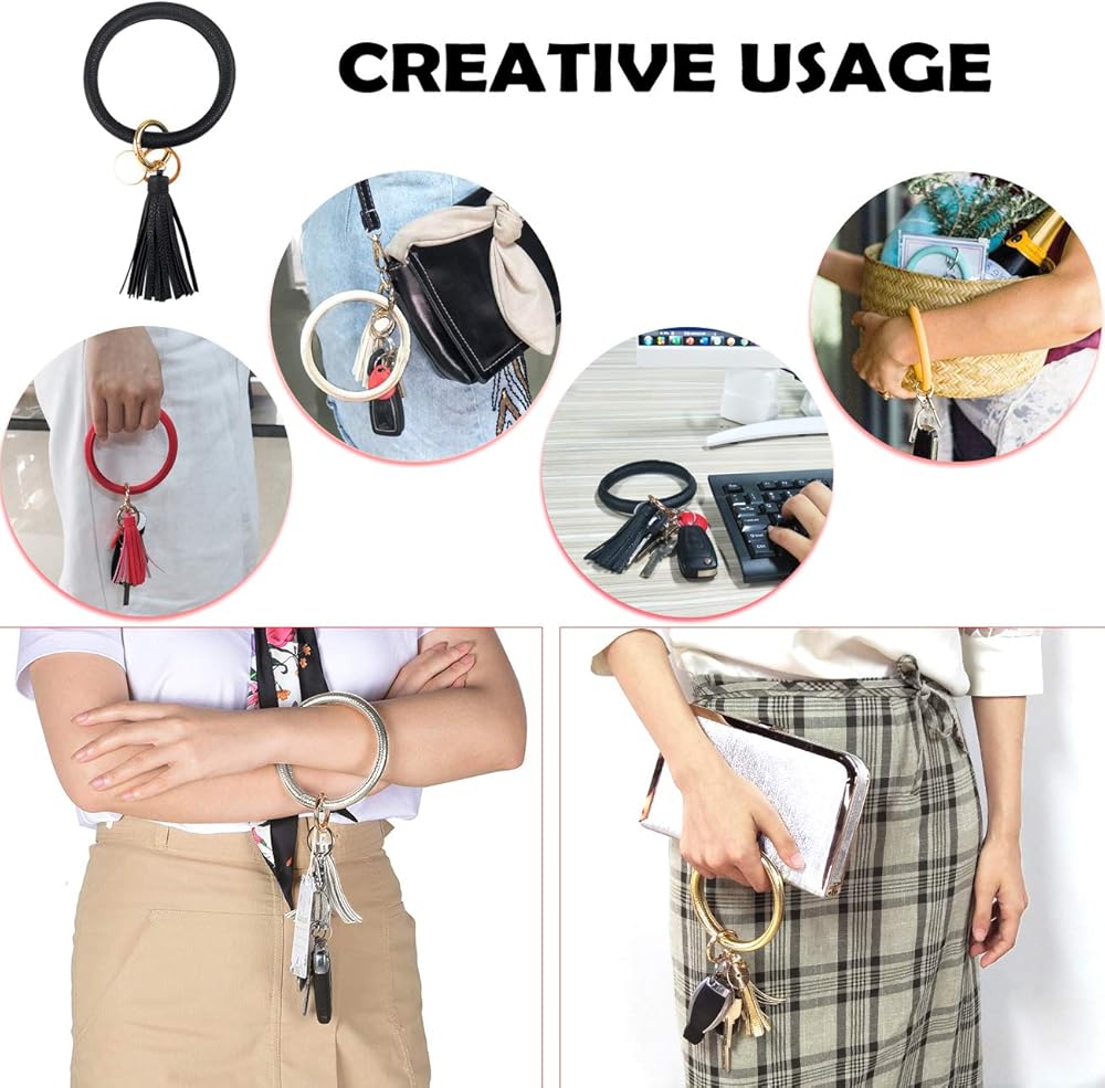 【خامة فاخرة】مصنوعة من جلد متين، قوي وناعم، مريح في الارتداء. تصميم أنيق ذو ألوان نقية وحلقات مفاتيح رائعة على شكل شرابة مثالية لكل النساء والفتيات والأطفال والرجال.