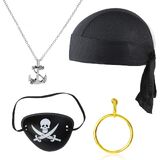 هل لديك حفلة قراصنة قادمة ولكنك لا تستطيع العثور على زي يناسبك؟ لا داعي للخوف لأن Beelittle هي الوجهة النهائية على خريطة كنز الملابس الفاخرة. تشتمل المجموعة على قبعة جمجمة قرصان دو خرقة، ورقعة عين بتصميم جمجمة وعظمتين متقاطعتين، وقرط ذهبي وقلادة ذات طابع قرصان. مجموعة الملحقات الكاملة لزي القرصان الفاخر الخاص بك.