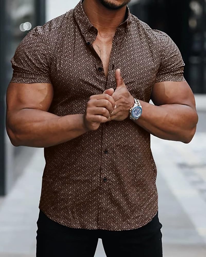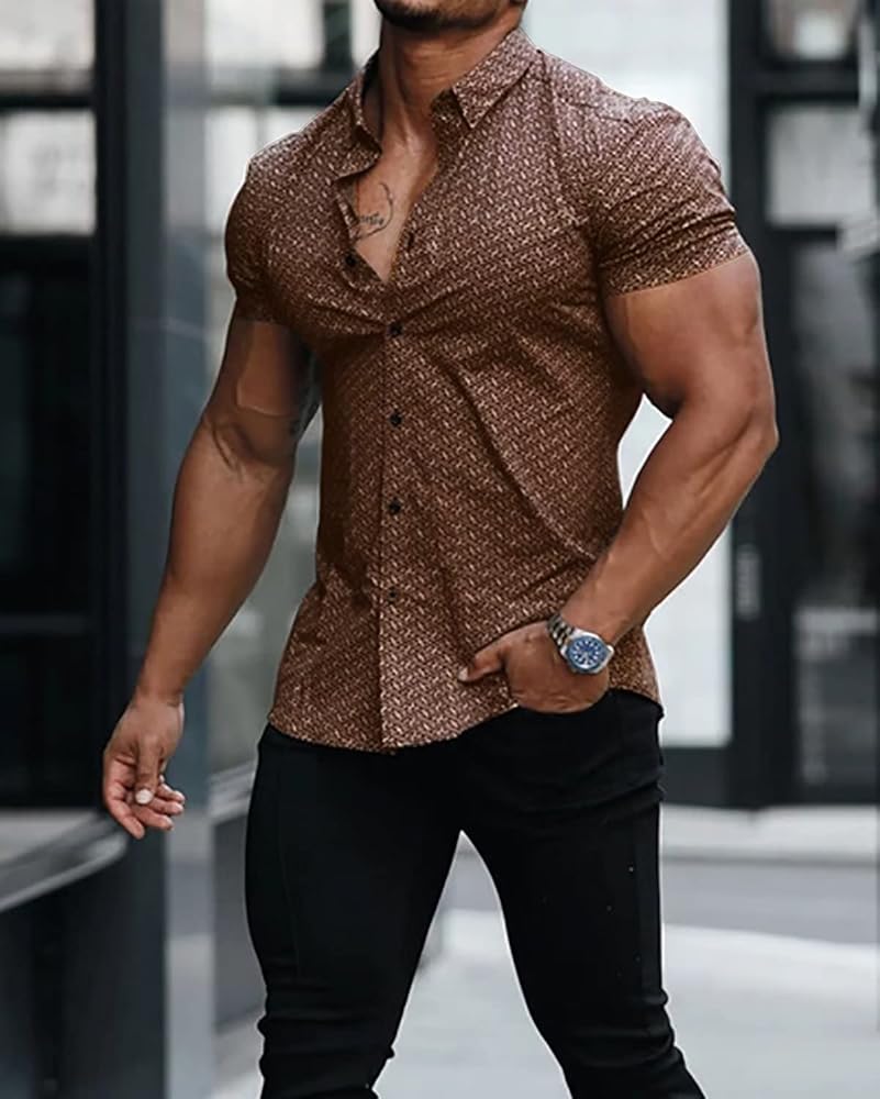 قمصان فساتين لطيفة وعناية سهلة: هذا القميص الرجالي الأنيق مخيط ومفصل بشكل جيد. قدرة جيدة على الرقة والراحة، قوية بما فيه الكفاية ومن الصعب التغلب عليها. يمكن غسل القمصان ذات الأكمام القصيرة المطبوعة في الغسالة أو يدويًا بماء بارد، وتصمد جيدًا بعد الغسيل. لا تستخدم المبيضات، والتجفيف بالمجفف على درجة منخفضة، والكي على درجة حرارة منخفضة إذا لزم الأمر.