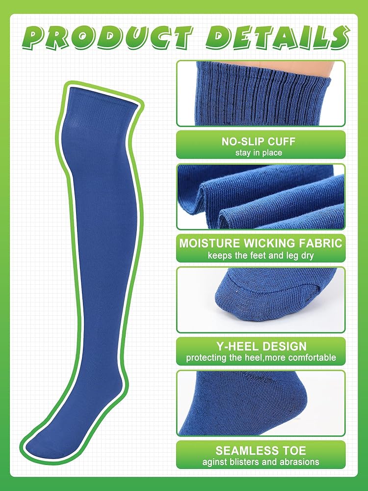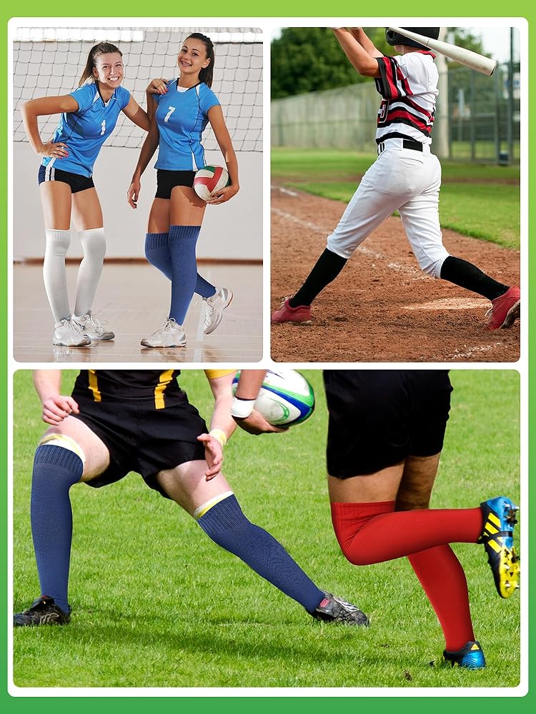 مصنوعة من أجل الراحة: جوارب البيسبول فوق الركبة مصنوعة من البوليستر والقطن، متينة وناعمة، مما يضمن ارتداء طويل الأمد، حتى تتمكن من الاستمتاع بدعم أنيق وموثوق طوال اليوم، وهي مسامية دون التعرق.