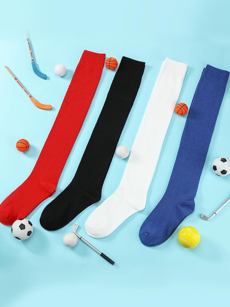 خيارات متعددة: جوارب كرة القدم للرجال والنساء لدينا تأتي بأربعة ألوان، الأبيض والأزرق والأسود والأحمر، ويمكنك العثور على اللون الخاص بك فيها، وسوف تحصل دائمًا على التوافق المثالي مع الملابس أو المناسبات المختلفة، سواء كان ذلك للارتداء اليومي أو الرياضة