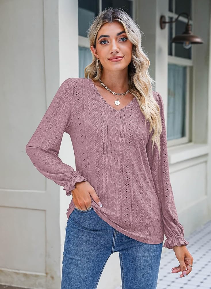 • النمط: قمصان علوية بفتحات للنساء/بلايز نسائية بأكمام طويلة/بلايز للسيدات كاجوال/قمصان برقبة على شكل حرف V للنساء/قمصان بفتحة رقبة على شكل حرف V وأكمام طويلة
