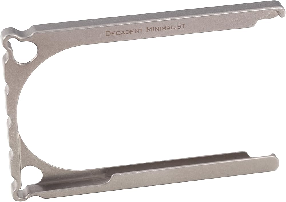 The DM1 is a truly minimalist design – it's a single piece of titanium, cut into the ideal shape to positively retain as few as 1 and up to 12 identification or credit cards. The design eliminates any unnecessary parts, but securely and beautifully carries and protects your cards. It does NOT block RFID – so you can use building access cards and contact-less RFID credit cards without removing them from the DM1. The open front and back are ideal for photo ID cards like a drivers license. At only 3.53” x 2.38” x 0.51”, it is thinner than a deck of cards and just barely larger than a credit card. Our products are CNC Machined from a single billet of solid Titanium. There are no screws, hinges, snaps, magnets, straps or rubber bands to break. At 40 grams, it might be the lighest wallet that can carry 12 cards! Ti-Black coating is a beuatiful scratch-resistant industrial hard-coating.