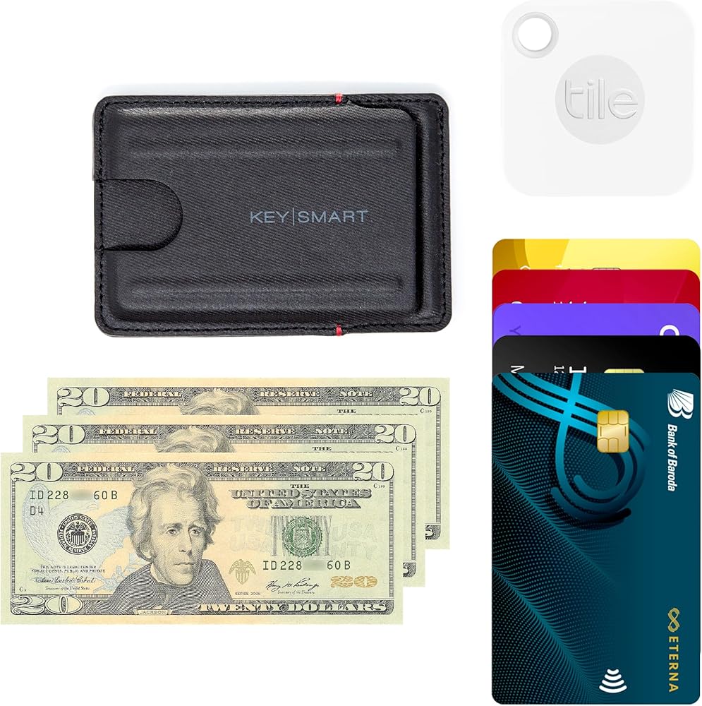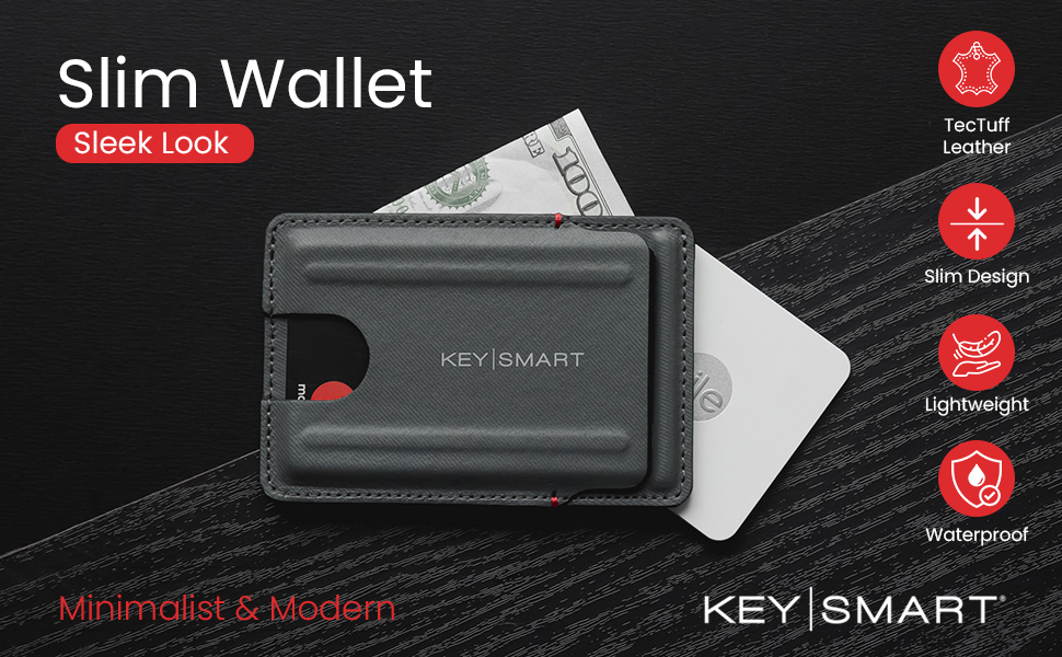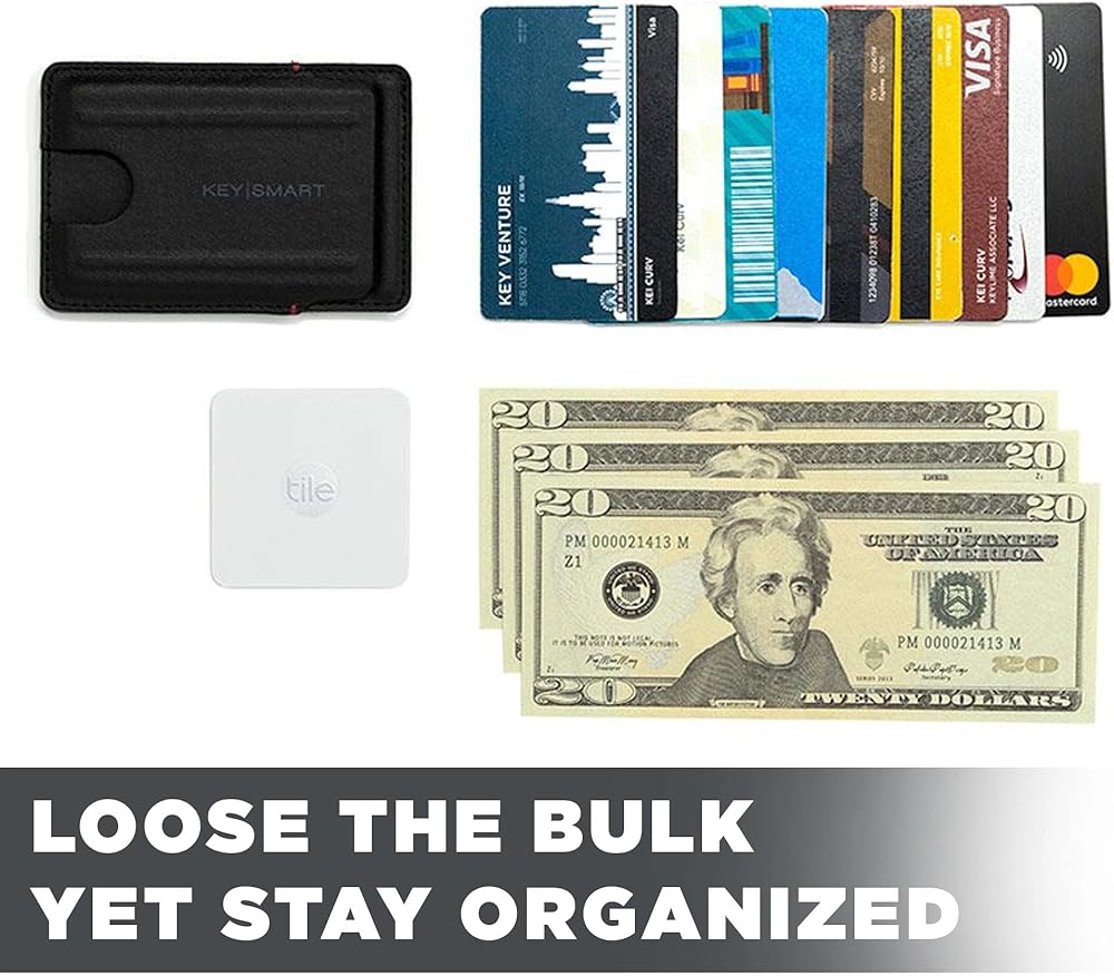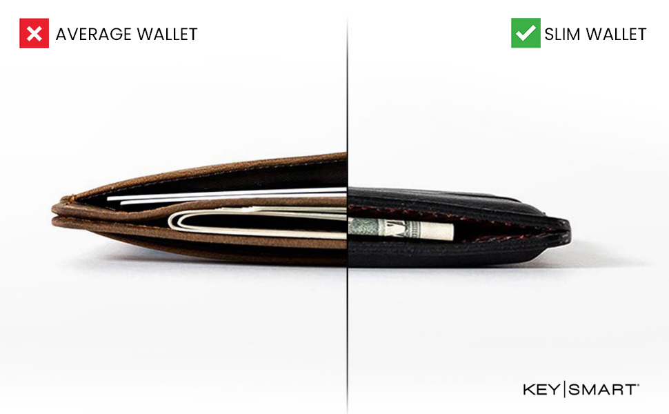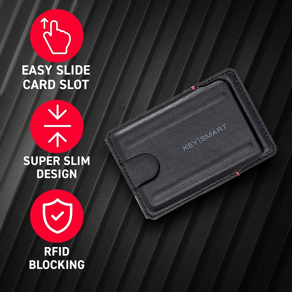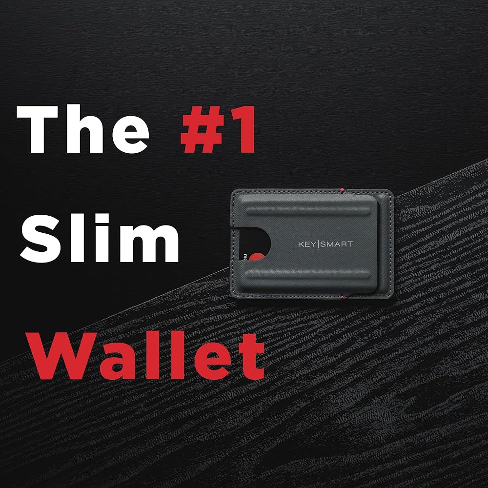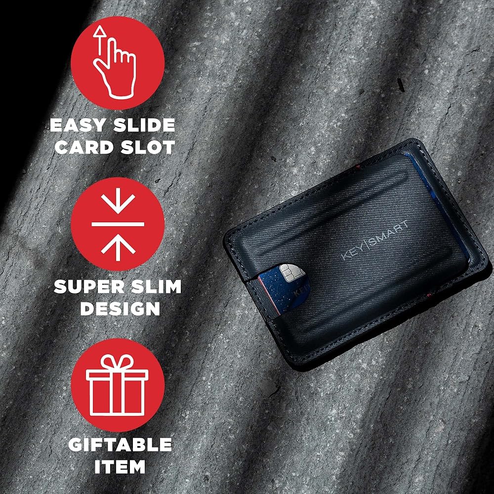 محفظة KeySmart رفيعة - محفظة صغيرة الحجم من جلد TecTuff - حامل بطاقات ائتمان بفتحات سهلة الانزلاق للرجال - محفظة جيب أمامية صغيرة وخفيفة الوزن RFID تحجب هدايا عيد الميلاد للرجال والزوج والأب