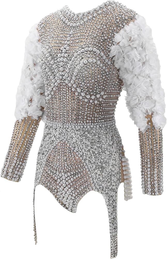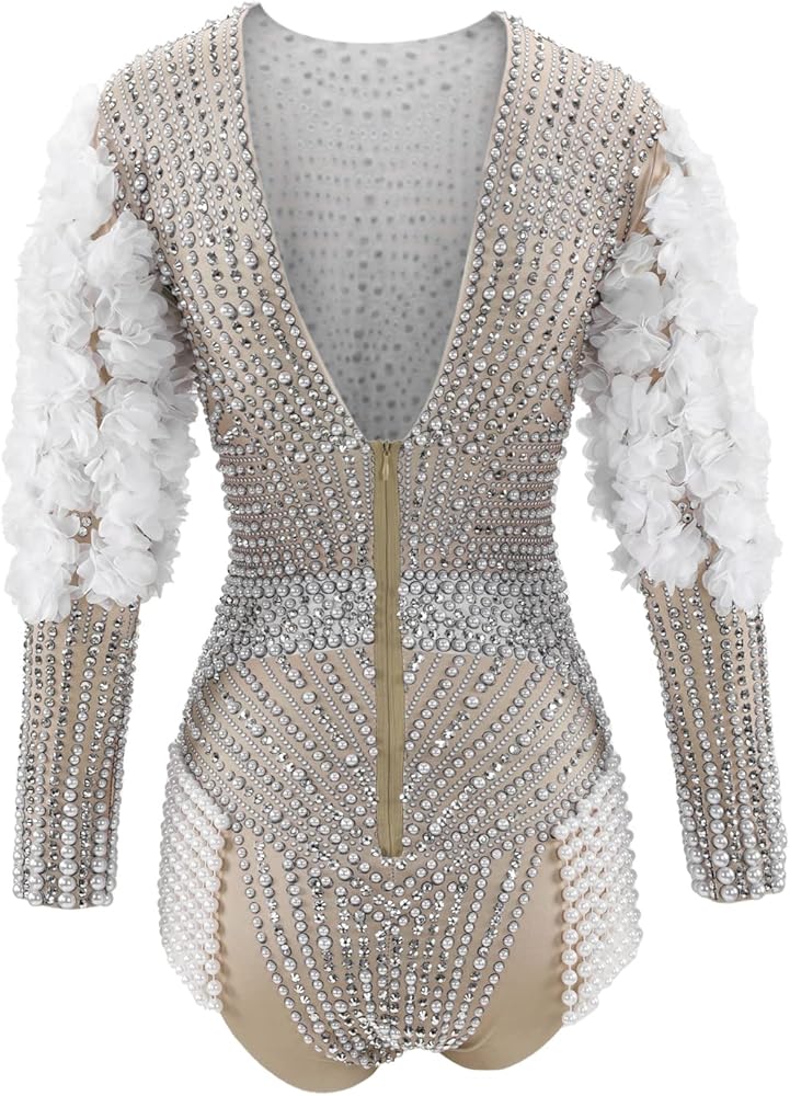 أزياء الرقص YUANTONG ملابس لاس فيغاس للنساء، بدلة قطعة واحدة مثيرة مرصعة بحجر الراين ملابس ليلية خارج المنزل
