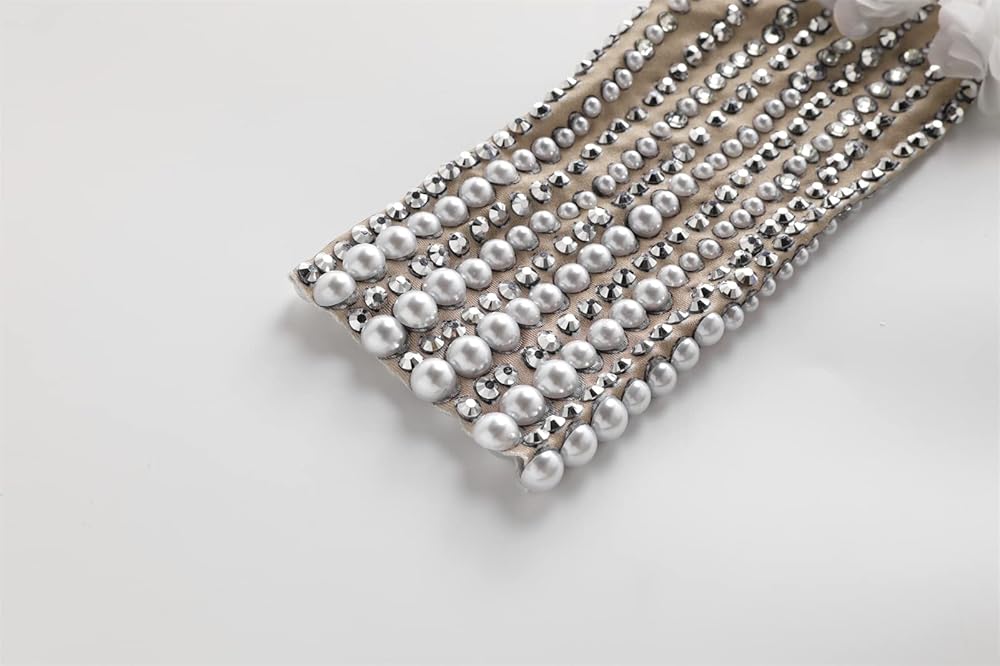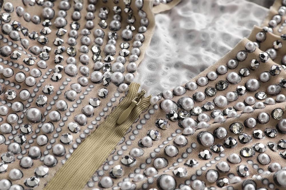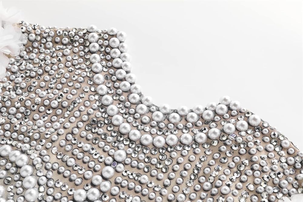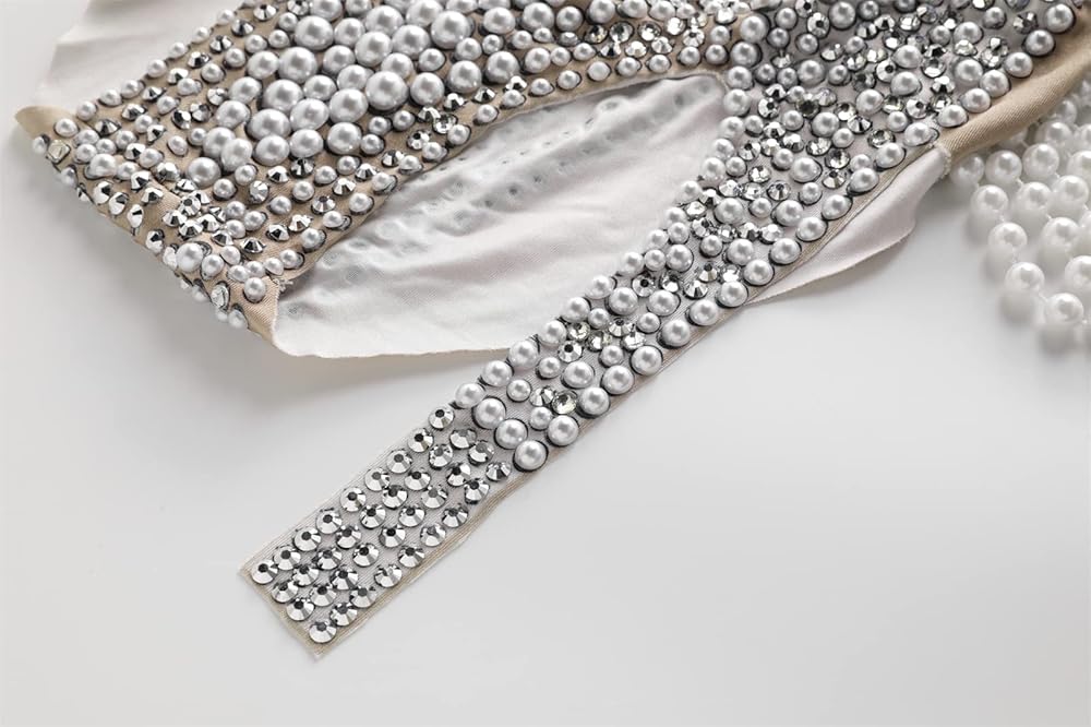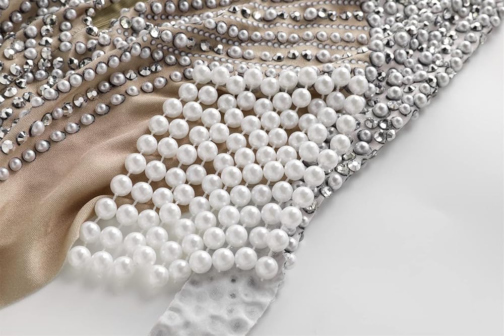البدلة مزينة بأحجار الراين واللؤلؤ، مما يجعل البدلة تبدو أكثر روعة.