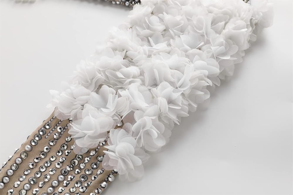 تم تزيين هذا البدلة الداخلية بتلات بيضاء على الذراعين، مما يجعل البدلة بأكملها تبدو متعددة الطبقات.