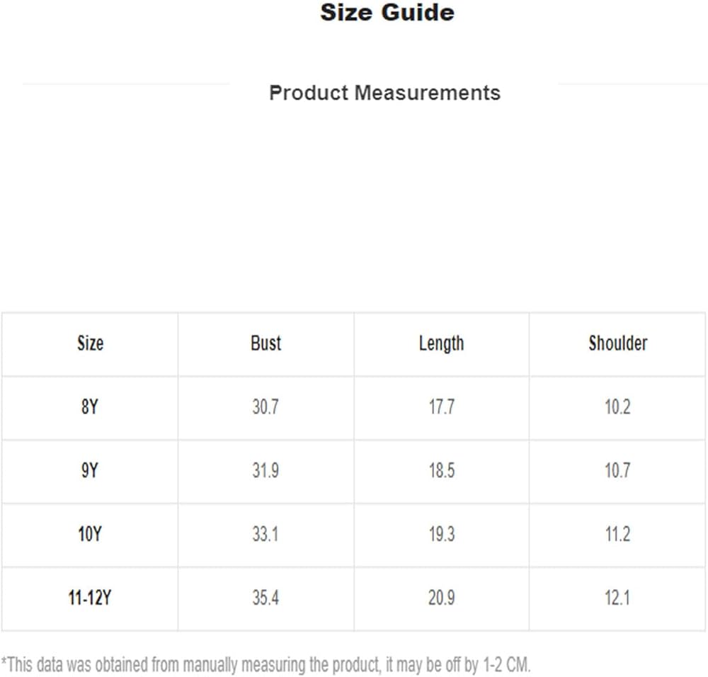 8 سنوات: الصدر: 30.7 بوصة، الطول: 17.7 بوصة، الكتف: 10.2 بوصة