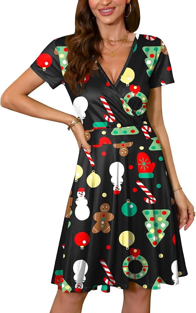 فستان ملفوف - استمتعي بروح عيد الميلاد مع هذا الفستان الساحر! إنها مزينة بزخارف وألوان كلاسيكية للعطلات، مما يخلق جوًا دافئًا وجذابًا مثاليًا للاحتفال بهذا الموسم.