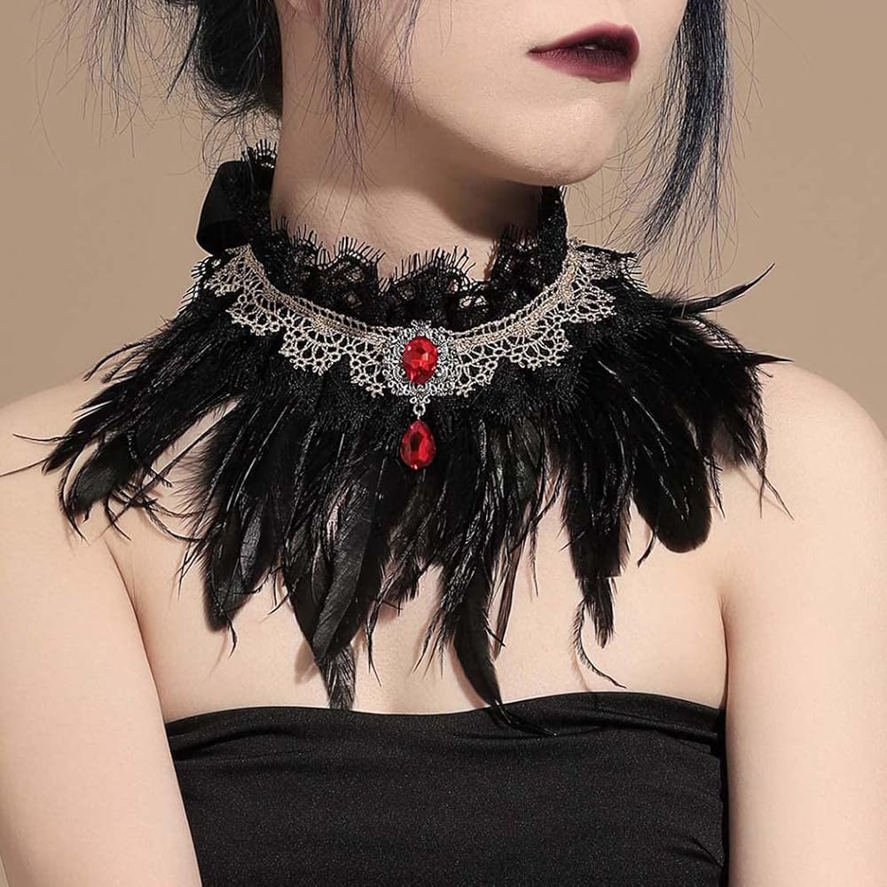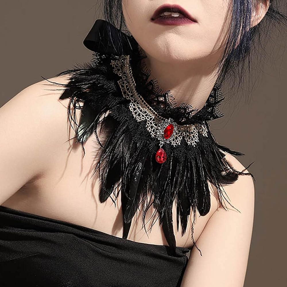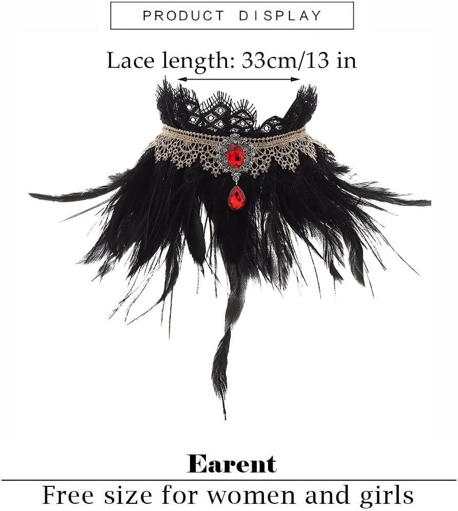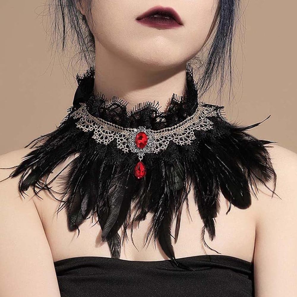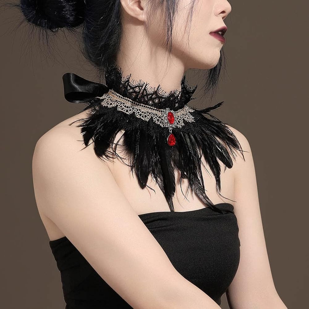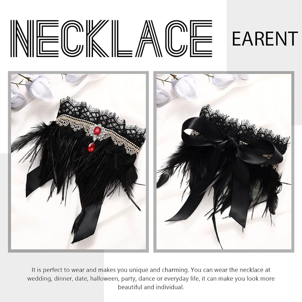 سلسلة رقبة رائعة وأنيقة، قلادات ممتازة بياقة من الدانتيل الأسود لحفلات الهالوين والكاجوال، مثالية لموضوع العطلات، تجعلك أكثر جاذبية في الحفلات أو الحياة اليومية، ومجوهرات ريش قوطية مشهورة بنمط خاص يجب أن تمتلكه النساء.