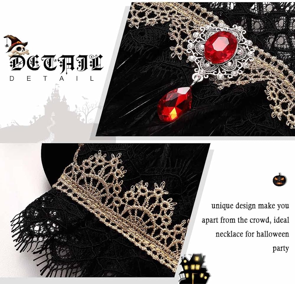قلادة طوق الدانتيل القوطي مصنوعة من الدانتيل والريش والكريستال والقماش عالي الجودة، إنها رائعة وسخية. إذا كنت ترغب في الحصول على قلادة خاصة مناسبة للهالوين، فإن قلادة الريش الأسود هي خيارك المثالي.