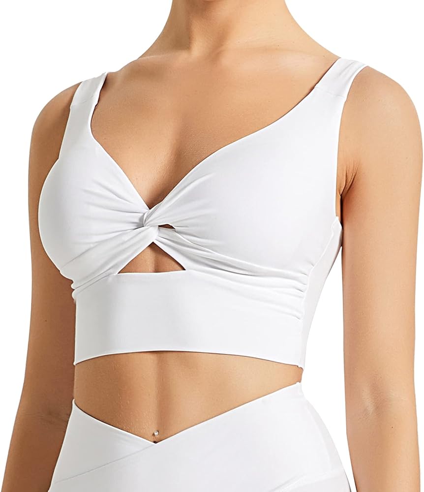 فريدة وأنيقة: حمالة صدر رياضية بيضاء بدون أكمام تتميز برقبة على شكل حرف V وتصميم عقدة متقاطعة من الأمام والخلف على شكل حرف U لتجميل منحنيات صدرك وظهرك، وإضافة لمسة جذابة وعصرية إلى حمالة الصدر الرياضية النسائية هذه.