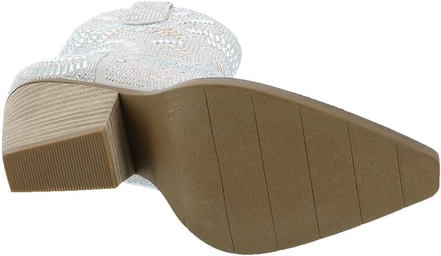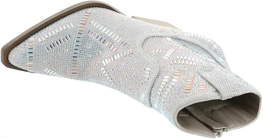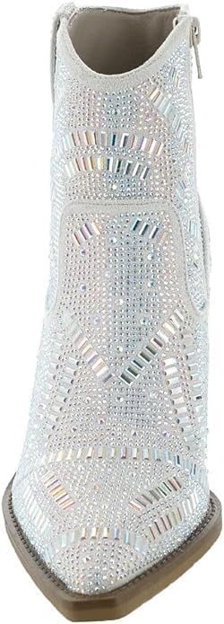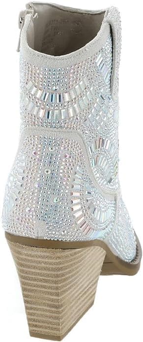 حذاء نسائي من Very G Maze Western حجر الراين للكاحل - حذاء جلد صناعي أنيق بارتفاع كعب 3 1/4 بوصة - أحذية رعاة البقر الأنيقة - أحذية نسائية متعددة الاستخدامات للمناسبات غير الرسمية والمناسبات الرسمية