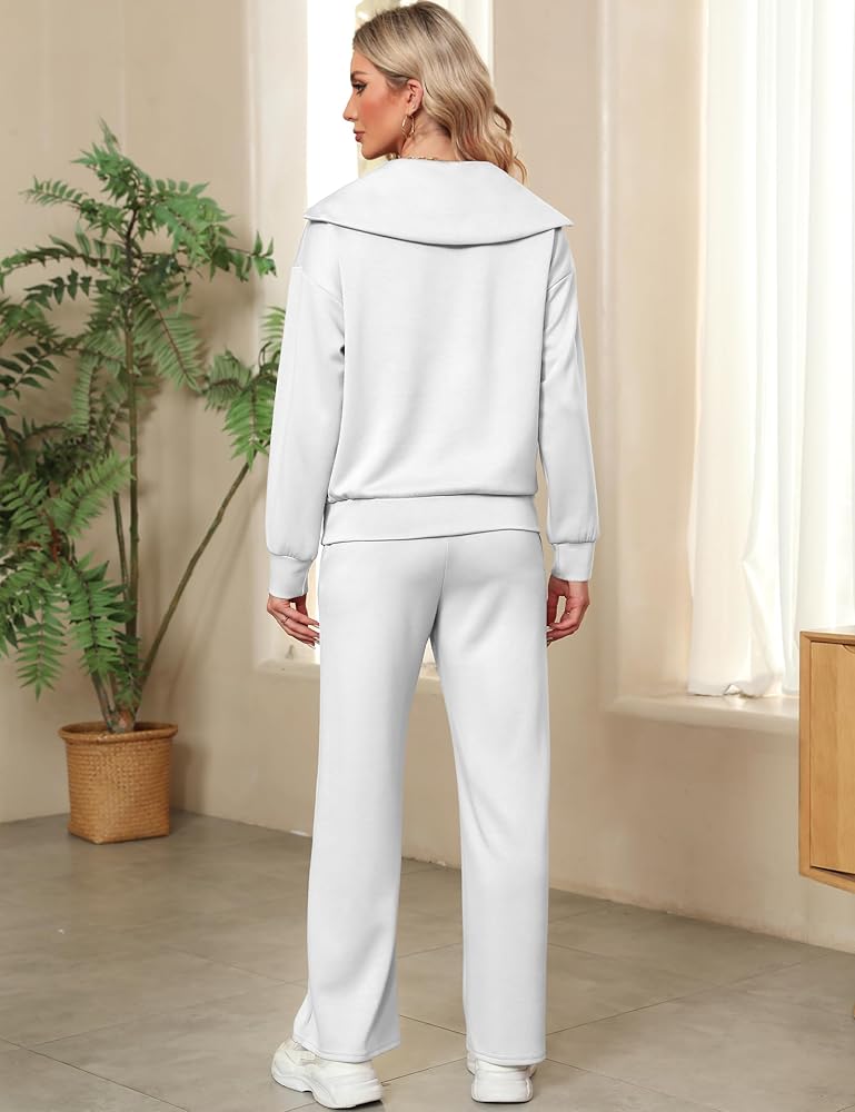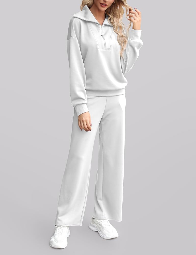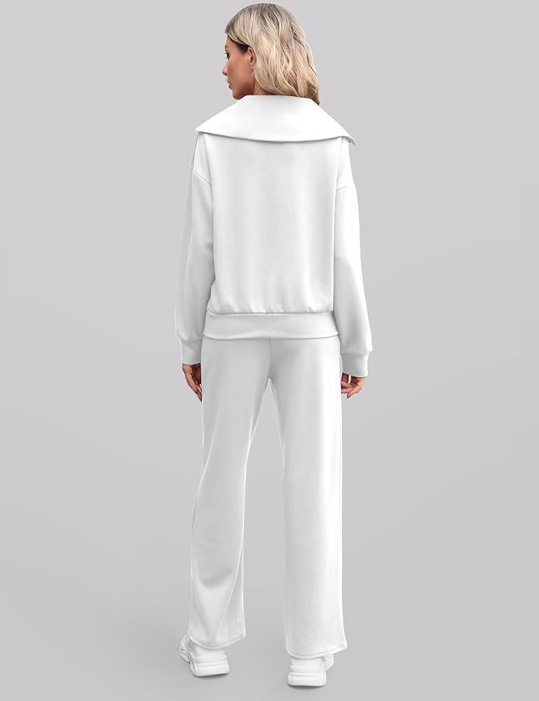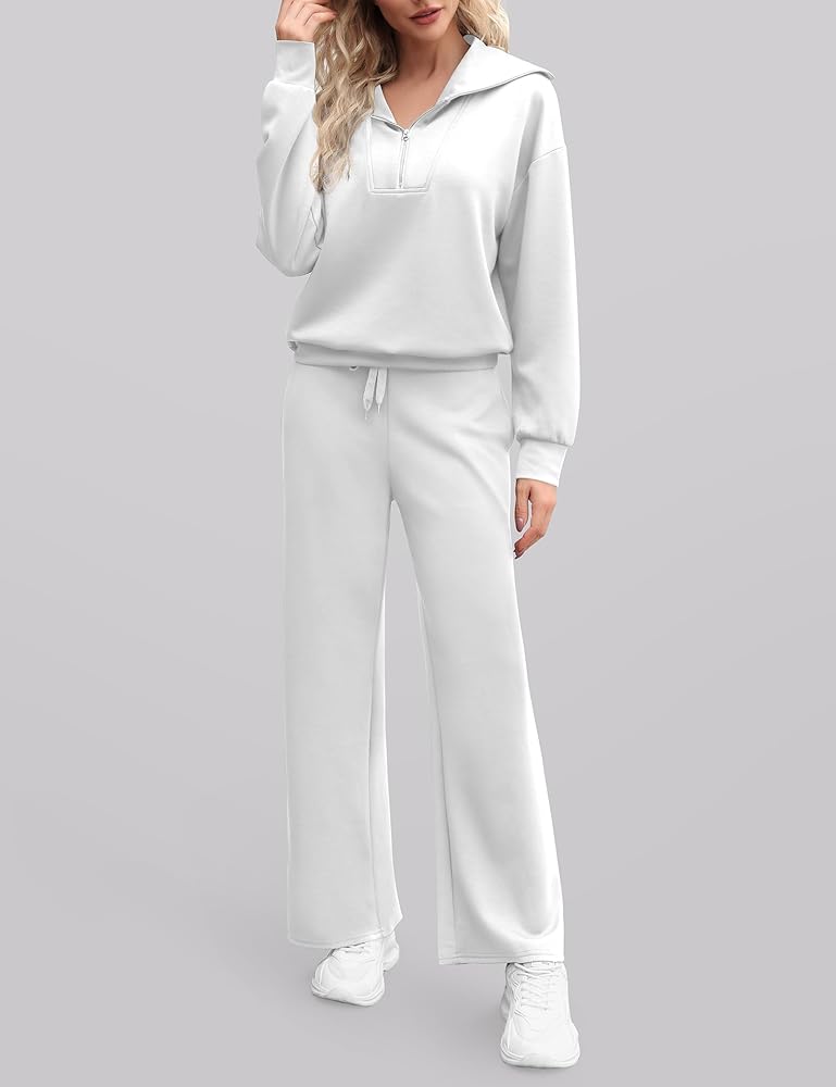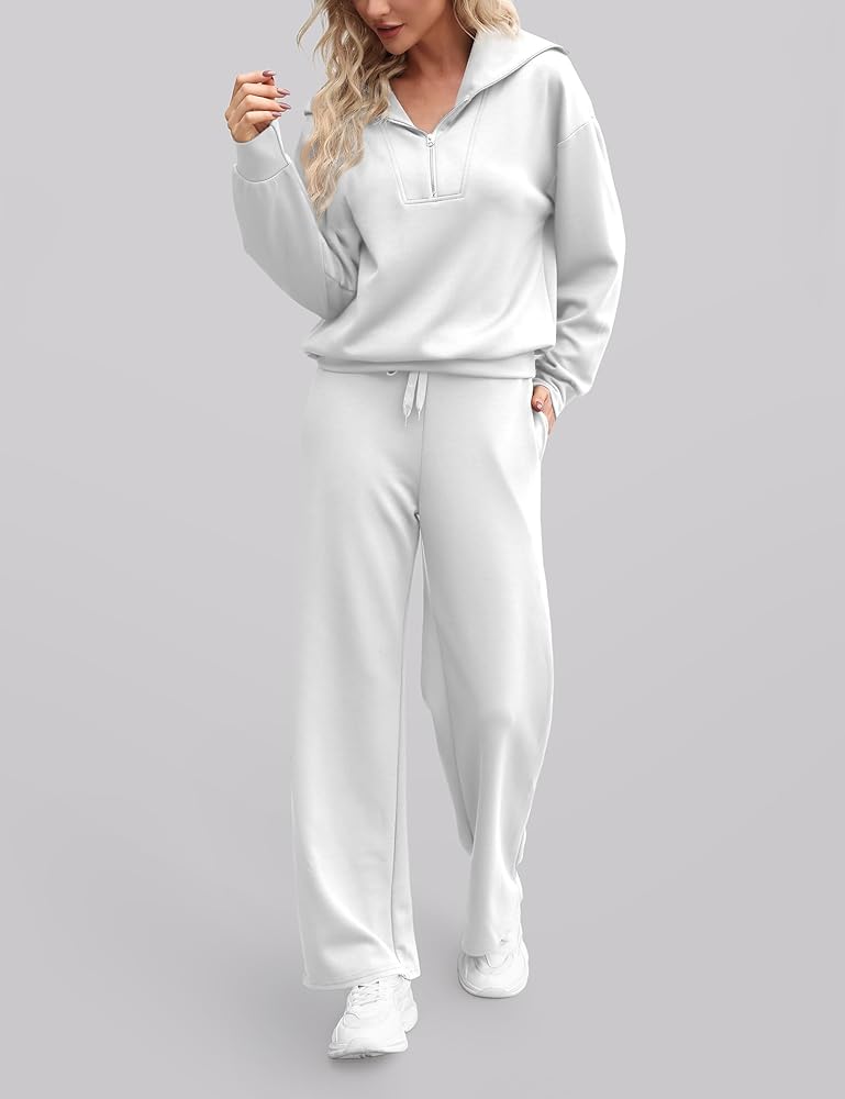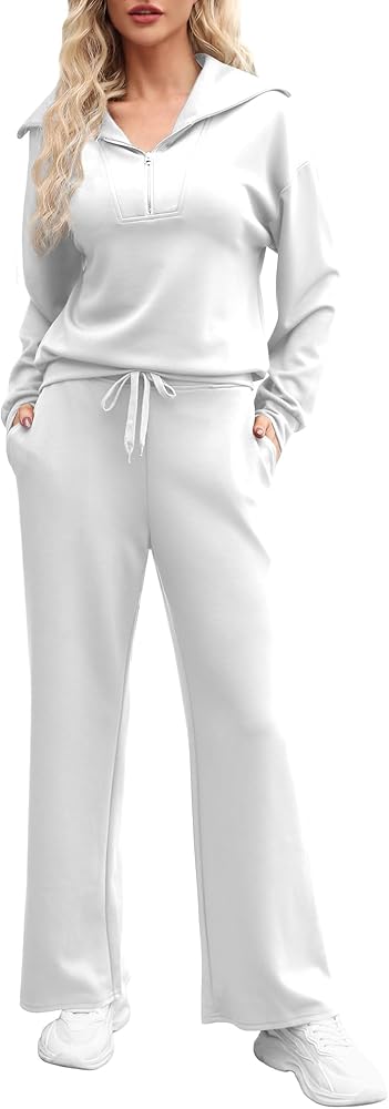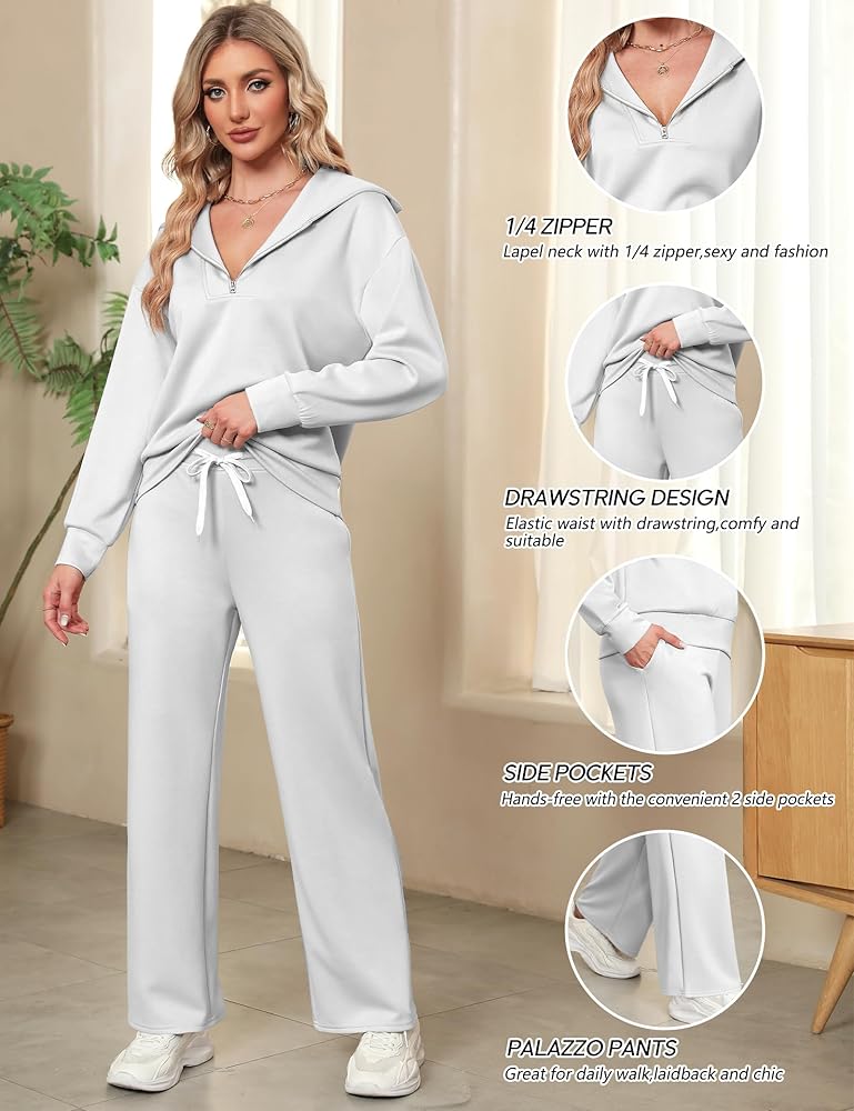 • 【المميزات】ملابس الخريف الكاجوال هذه للنساء مع خصر مطاطي برباط. بنطال واسع الساق مع كنزة صوفية، طقم ملابس مريحة، هوديي بأكمام طويلة، خصر عالي، بنطال رياضي مفتوح من الأسفل. بدلة رياضية نسائية قطعتين، لون خالص، سترة بسحاب 1/4، جيبان جانبيان لحمل الأشياء الصغيرة مثل المفاتيح والهواتف .