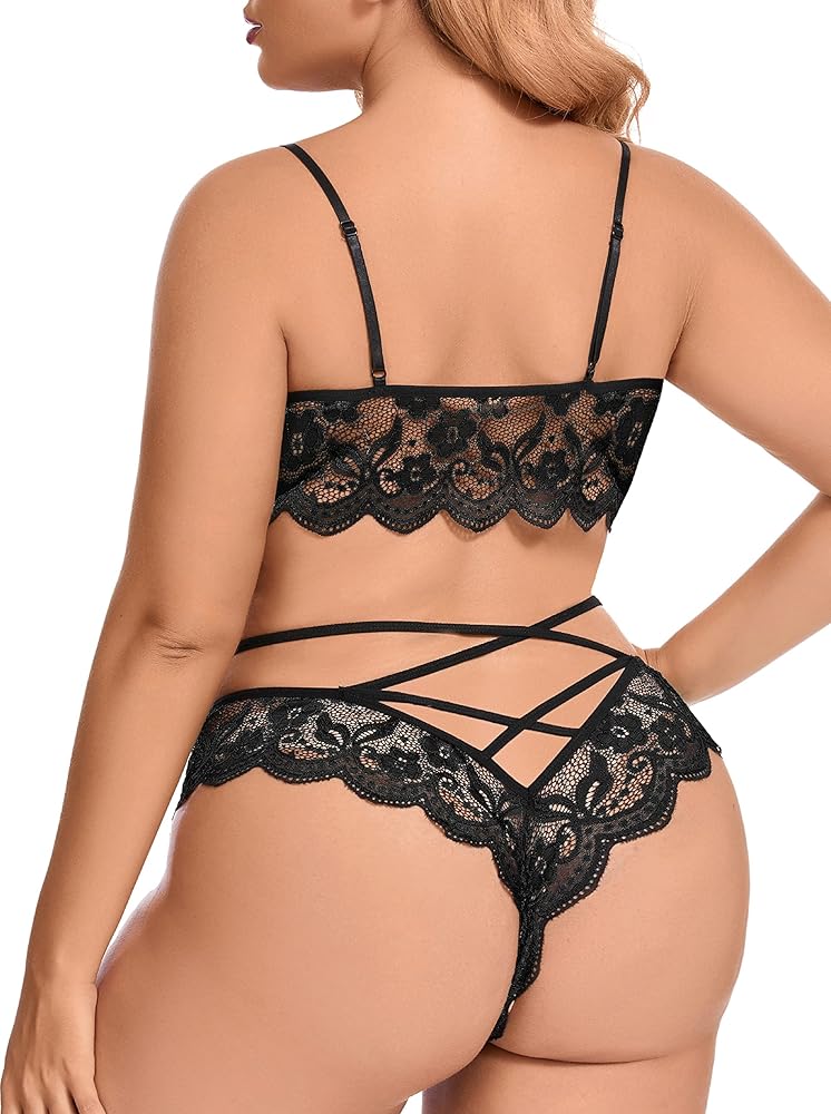 ❤️ يتميز طقم البيجامة الجذاب ذو الحجم الكبير هذا بزخرفة صدفية من الدانتيل الزهري الشفاف مع تفاصيل أشرطة متقاطعة ولمسات من الساتان وأشرطة سباغيتي قابلة للتعديل.