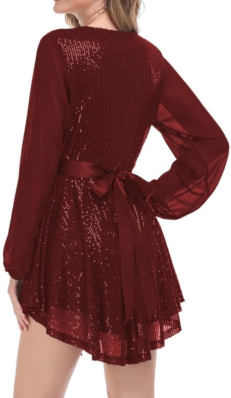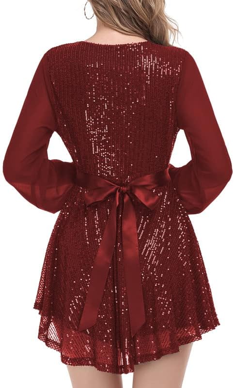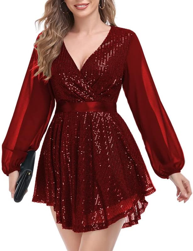 الميزات: يحتوي هذا الفستان على جميع الميزات التي تحتاجها لتبدو مذهلة وعصرية! من تصميم الرقبة على شكل حرف V بأكمام طويلة إلى الترتر اللامع والطول القصير اللطيف، هذا الفستان مثالي للتمرينات أو ليالي المواعدة في عام 2023.