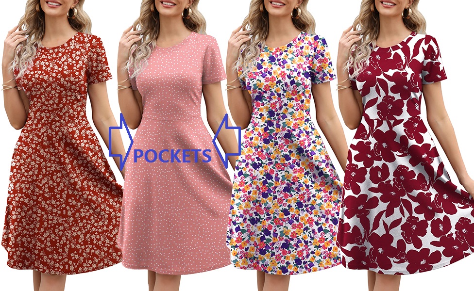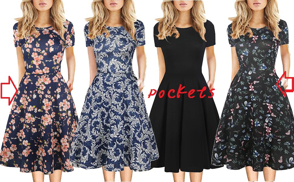 الميزات: فساتين مناسبة ومتوهجة للنساء، فستان تونيك زهري مع جيوب. فستان بطباعة الزهور لربيع وصيف. تصميم أنيق وبسيط، والعديد من الألوان الأساسية الصلبة. ضرورة لكل خزانة الملابس. يمكن ارتداؤه في العديد من المناسبات حسب ما تزينينه.
