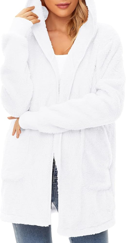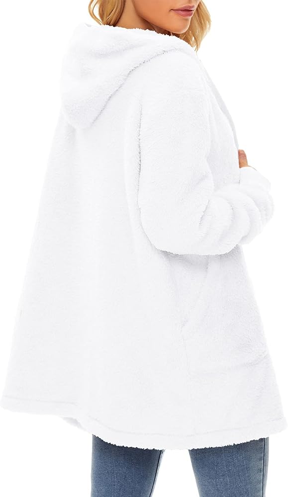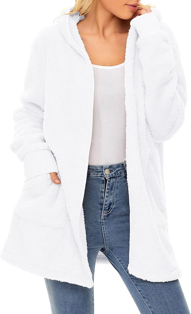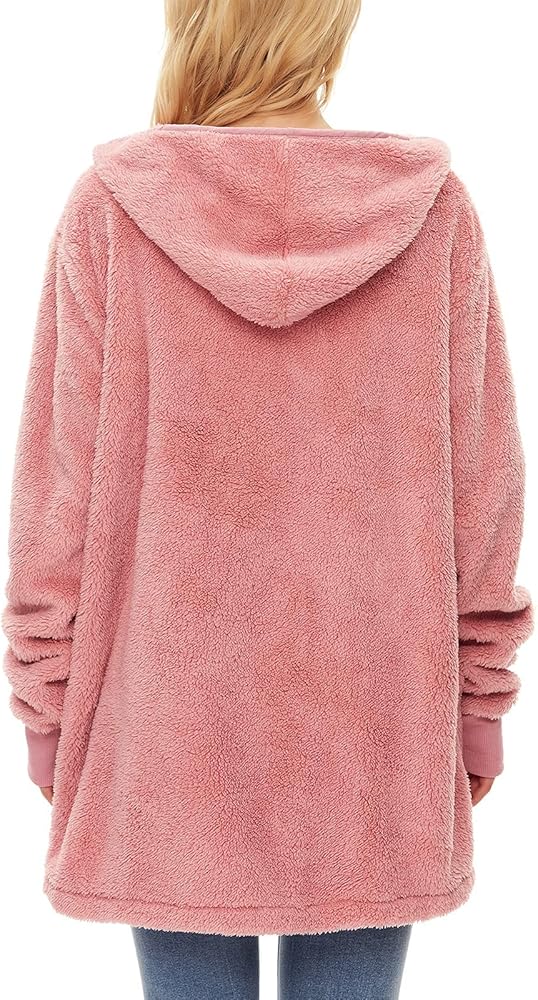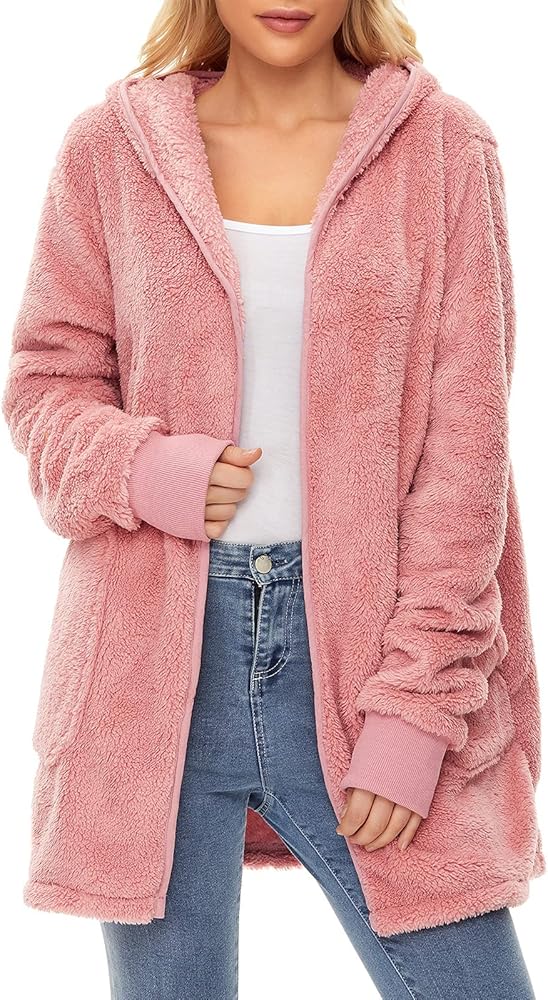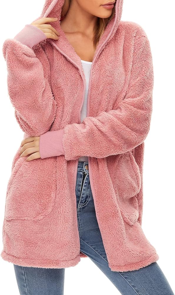 الاتجاهات الأمريكية المرأة سترة الصوف خفيفة الوزن سترة طويلة البلوزات المتضخم غامض الخريف شيربا هوديي مع جيوب معطف فروي دافئ