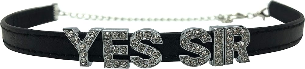 تشوكر كاستوم طوق من الجلد الصناعي يس سير للنساء - اكسسوار لطيف ومثير قابل للتعديل من الجلد ومرصع بحجر الراين