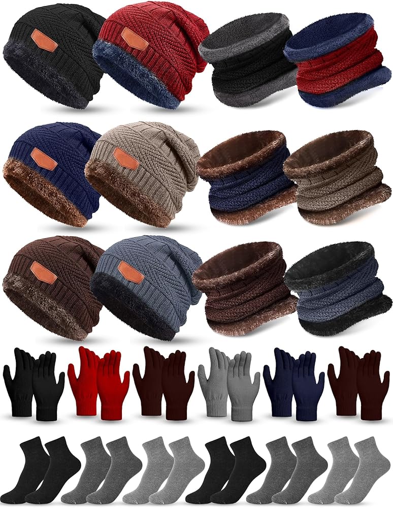 Abundant to Choose: you will receive 6 winter hats, 6 scarfs, 6 pairs of gloves and 6 pairs of socks, 24 pieces in total, in classic colors, suitable for winter use, the quantity is enough for your daily needs and replacement demands, sharing them with your family, friends or neighbors is also nice