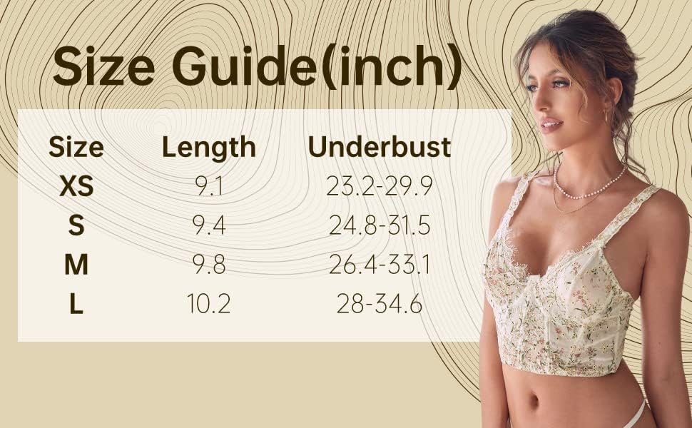 جدول المقاسات: X-Small: مقاس حمالة الصدر (الولايات المتحدة/المملكة المتحدة):30B,30C,32A,32B"، مقاس حمالة الصدر (الاتحاد الأوروبي/INT):65B,65C,70A,70B"/ صغير: مقاس حمالة الصدر (الولايات المتحدة/المملكة المتحدة) :32C، 32D، 34A، 34B"، مقاس حمالة الصدر (الاتحاد الأوروبي/INT): 70C، 70D، 75A، 75B"/ متوسط: مقاس حمالة الصدر (الولايات المتحدة/المملكة المتحدة): 34C، 34D، 36A، 36B"، مقاس حمالة الصدر (الاتحاد الأوروبي) /INT):75C,75D,80A,80B"/ كبير: مقاس حمالة الصدر (الولايات المتحدة/المملكة المتحدة):36C,36D,38A,38B"، مقاس حمالة الصدر (الاتحاد الأوروبي/INT):80C,80D,85A,85B"/