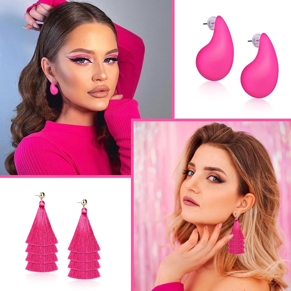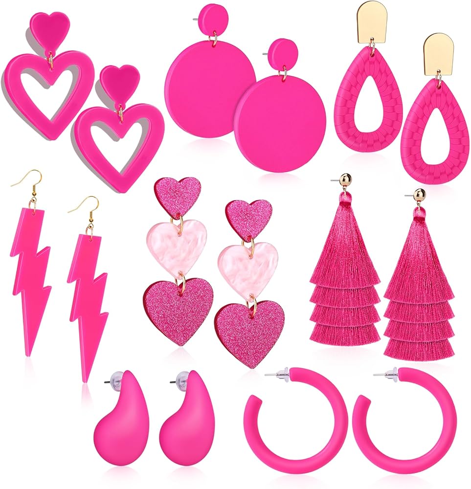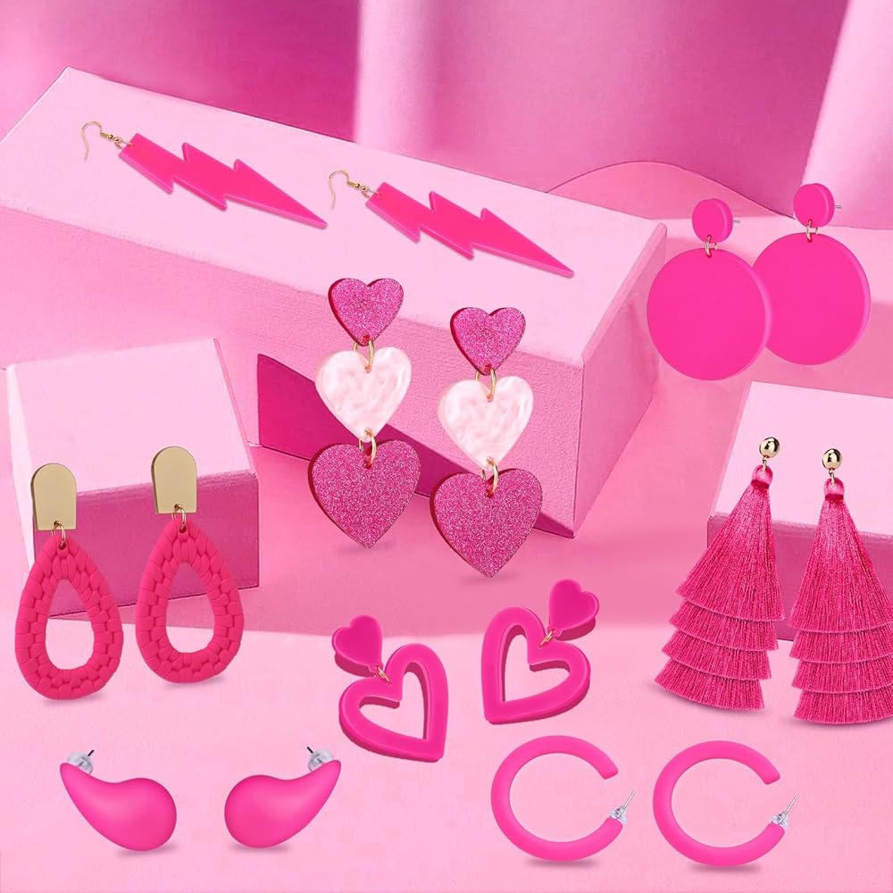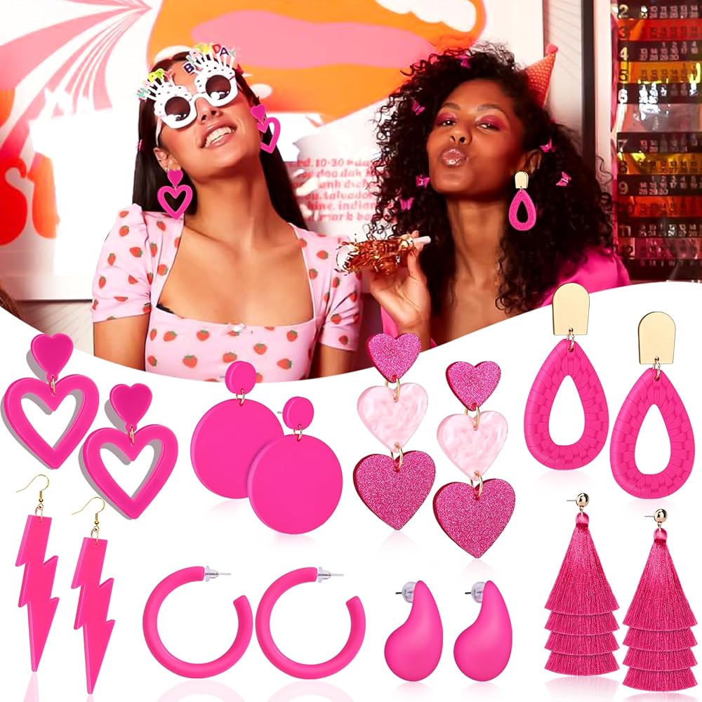 🎀 تتضمن أقراط وردية: هناك أقراط على شكل قلب وردي، أقراط للحبيب، أقراط شرابة، أقراط على شكل دمعة (تصميم بوهو)، أقراط ترتر، أقراط برق، أقراط حلقية وردية، أقراط يانغ يانغ.