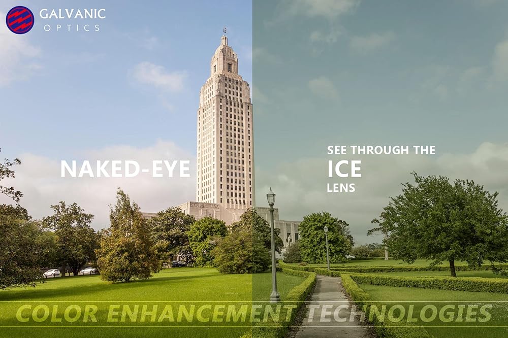 اختر Galvanic وصيد الأسماك والقيادة والتزلج والسفر لا مشكلة في الوهج. تقنية الاستقطاب حقاً Galvanic تقلل الوهج، وتعزز التباين، وتوفر حماية كاملة من الأشعة فوق البنفسجية، مما يجعل العدسات تصبح درع فعال ضد الوهج المتبهر الناجم عن التناثر والانعكاس للضوء.