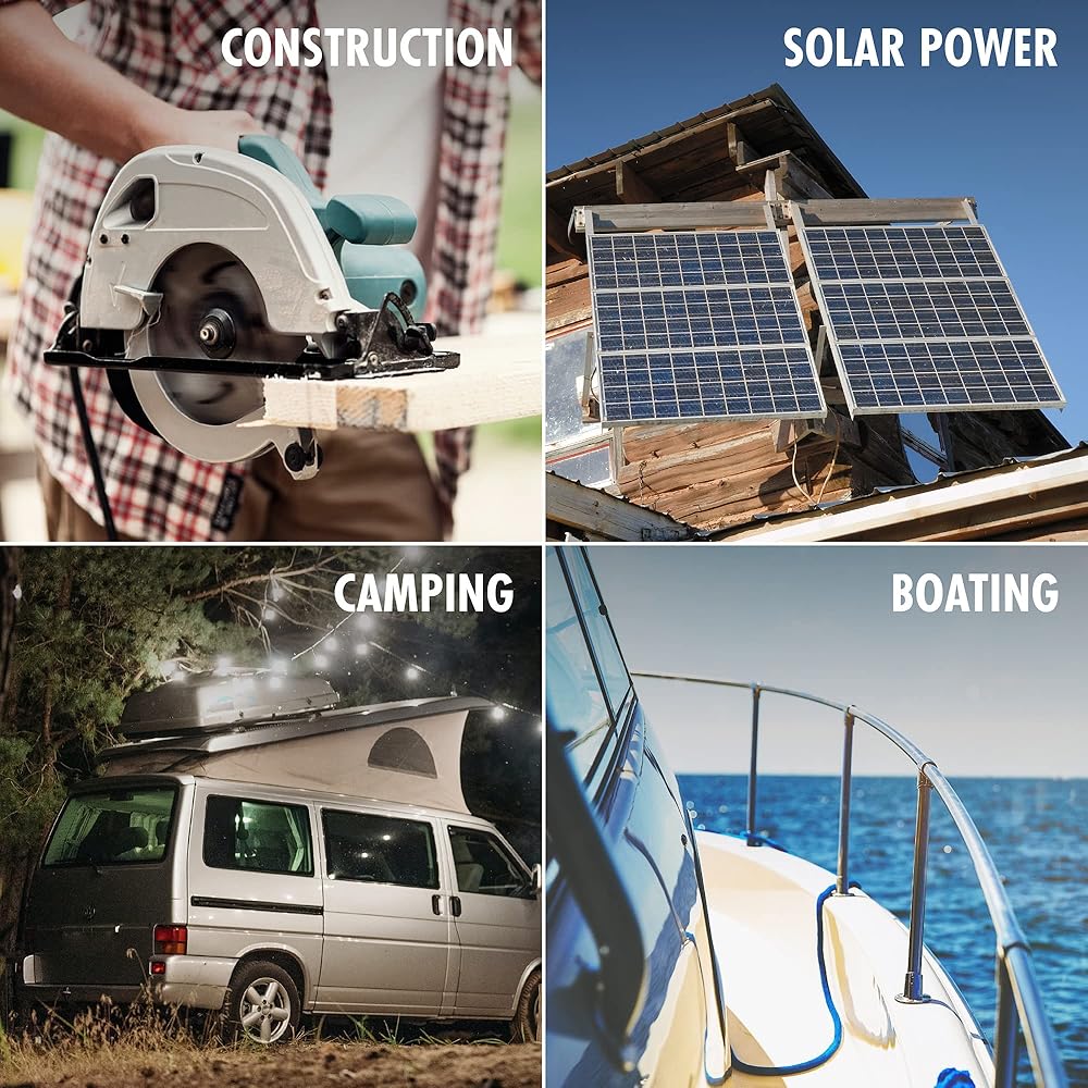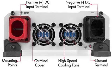 المنافذ المحمية من الأعطال الأرضية - طرف التركيب الصلب السالب (أسود)، وطرف التركيب الصلب الإيجابي (الأحمر)، ومراوح التبريد المزدوجة، وأقدام التركيب الصلبة، وطرف التوصيل الأرضي