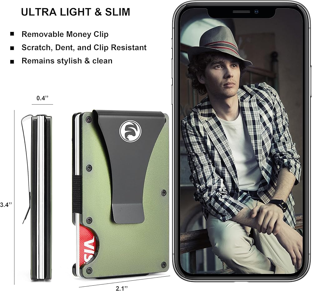 حجب RFID: يمكن لهذه المحفظة حجب أجهزة المسح الضوئي للصوص، وحماية سلامة الممتلكات الخاصة بك. ومع ذلك، إذا كان لديك شارة هوية تحتاج إلى مسحها ضوئيًا بشكل منتظم، فيمكنك وضعها في مشبك النقود الموجود في الخلف لمنع الاضطرار إلى إزالتها من محفظتك طوال الوقت!