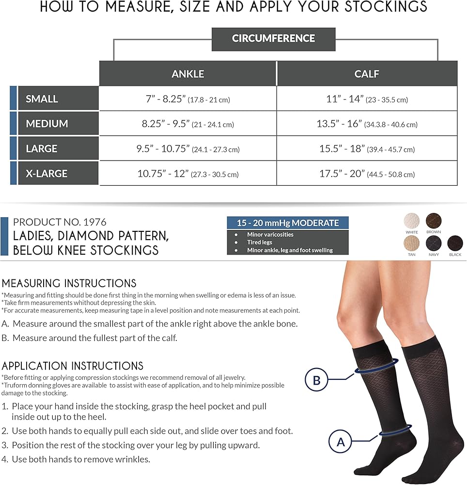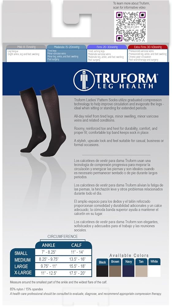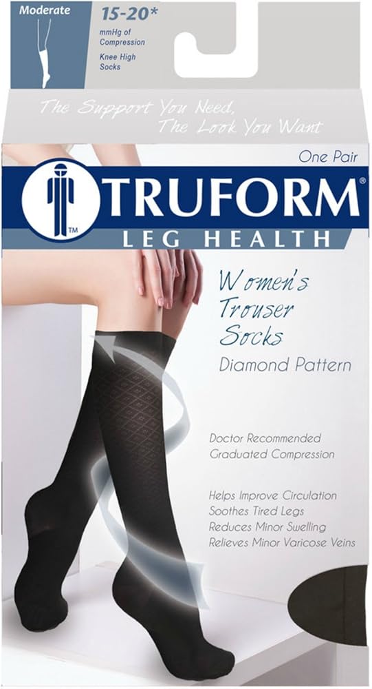 جوارب تروفورم للسيدات مصممة للمساعدة في تنشيط الساقين وتقليل عدم الراحة. نسيج نايلون من الألياف الدقيقة في هذه المجموعة يتميز بالنعومة الفائقة ومسامي بشكل لا يصدق للمساعدة في الحفاظ على انتعاشك. أنماط جذابة من نسيج مصمم يجعل هذه الجوارب خياراً ممتازاً لكل من ملابس العمل أو الملابس العادية. truform تخرجت ضغط ودعم الجوارب في ضغط معتدل 15-20 ملم زئبقي يساعد على الحفاظ على الدورة الدموية الإيجابية وصحة القدم. مثالي للممرضات والممرضات الذين يعانون من الأوردة العنكبوتية أو الدوالي وأولئك الذين يتوقعون رحلات طيران طويلة أو فترات طويلة من الجلوس أو الوقوف. تحتوي العبوة على زوج واحد.