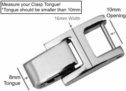 ساعة او سوار نسائي قابل للطي بمشبك تمديد وصلة تمديد 16 ملم عرض 8 ملم لسان 10 ملم فتحة في الخلف, بدون أحجار كريمة