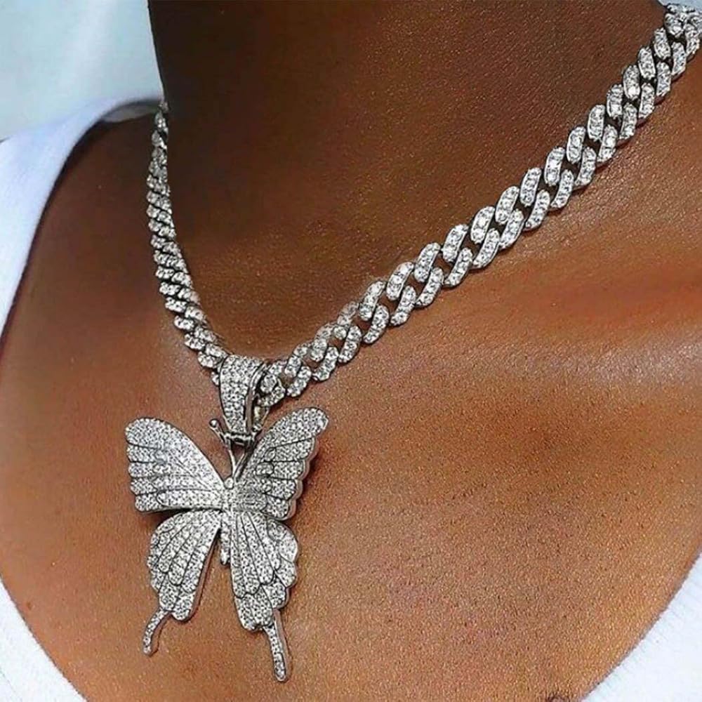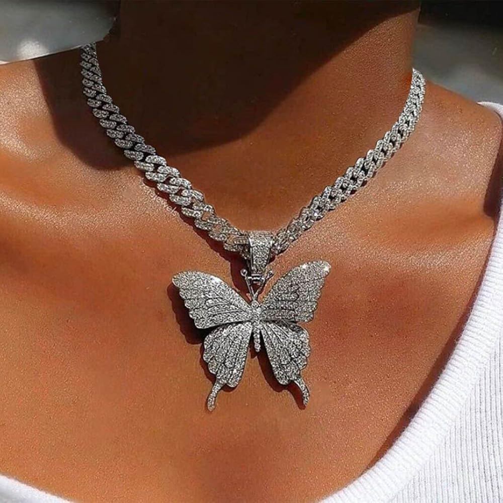 قلادة على شكل فراشة من حجر الراين اللامع للعائلة