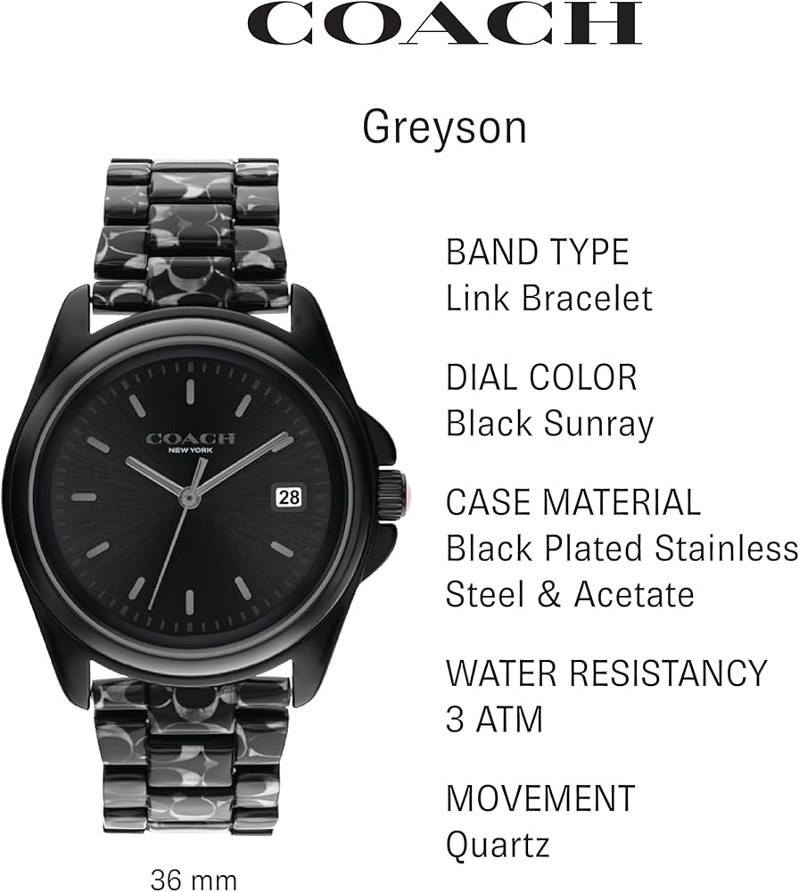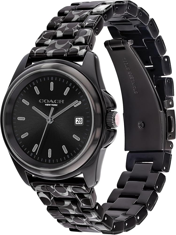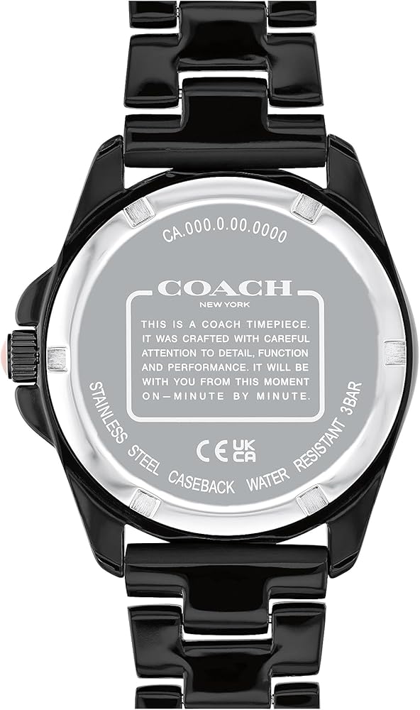 ضمان لمدة عامين: يقدم Coach ضمانًا محدودًا لمدة عامين ضد العيوب في المواد والصناعة التي تمنع الساعة من العمل بشكل صحيح في ظل الاستخدام العادي. يغطي ضمان الشركة المصنعة فقط المشتريات من بائع تجزئة معتمد.