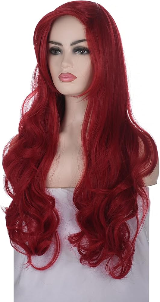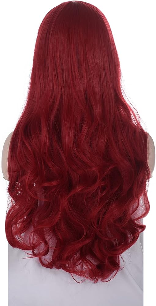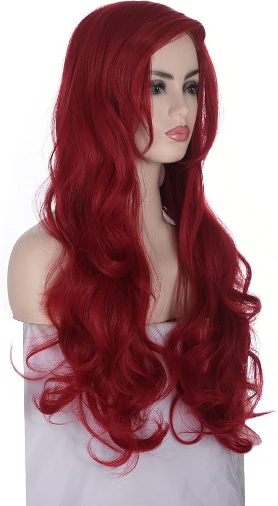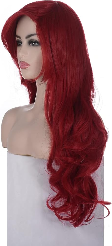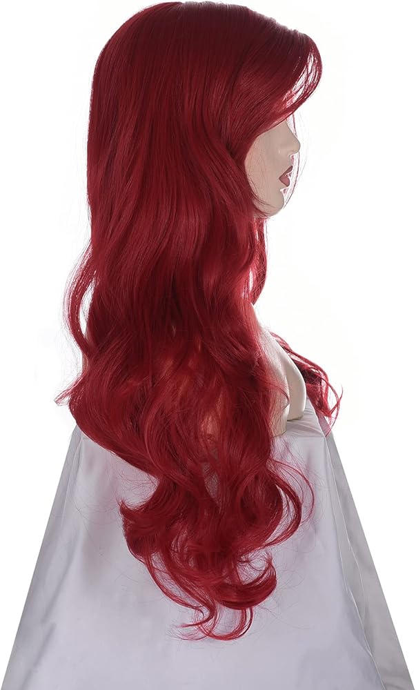 • 💋 Made of High Quality Synthetic Fiber,long curly red mermaid Ariel wig.