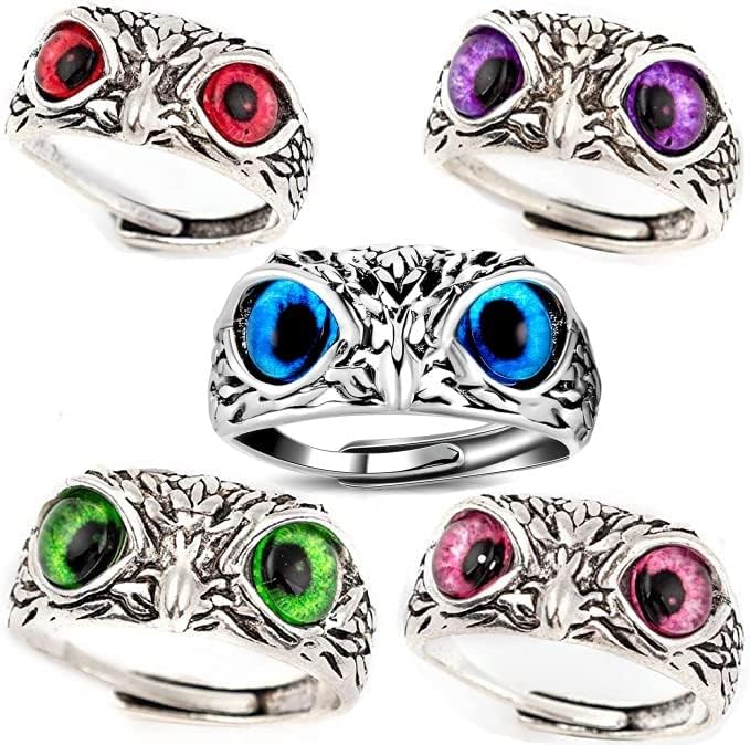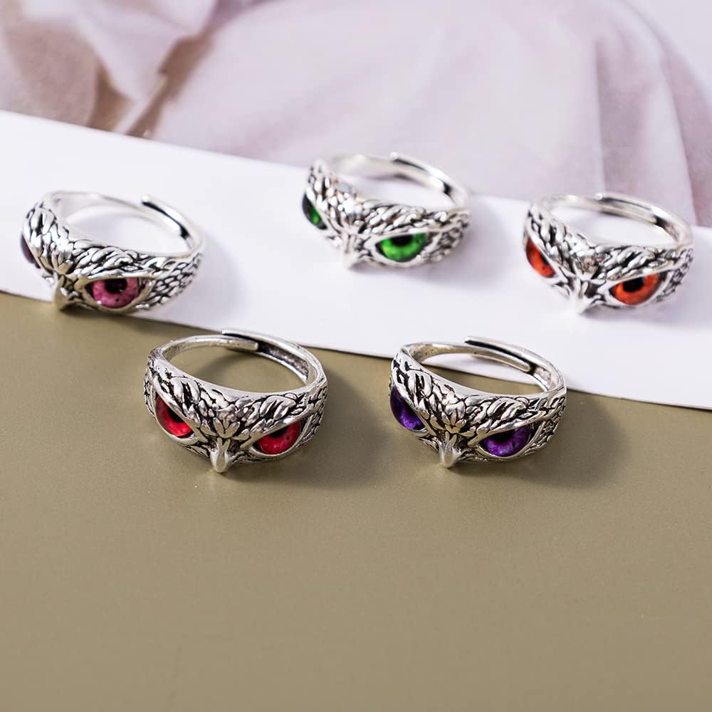 【العبوة】ستحصل على 5 قطع من خواتم البومة بألوان مختلفة؛ ترمز البومة إلى الحظ والحكمة الفائقة، وهي مخلوق محبوب. الطراز القديم، مجوهرات البومة منذ اليونان القديمة، ارتبطت البوم بالحكمة.