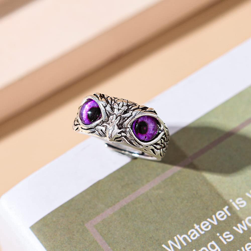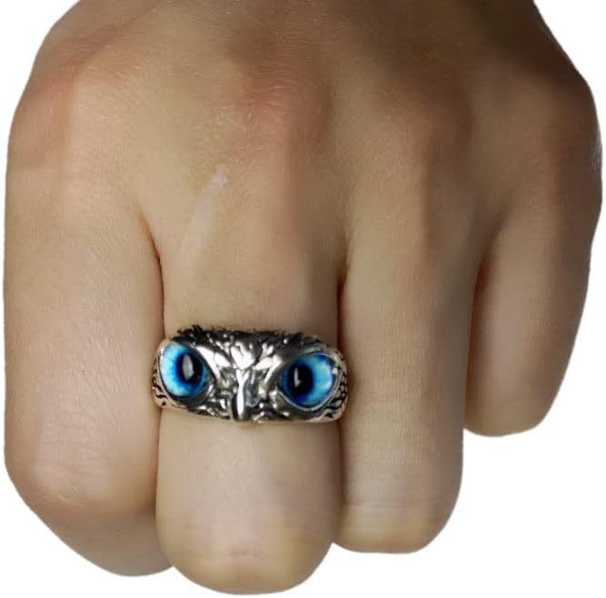 【تصميم جميل】خاتم البومة هذا له عيون ساحرة وهو هدية جميلة. تفاصيل جانبية رائعة، مضادة للحساسية، غير ضارة بصحتك. مريح في الارتداء ولا يؤذي الجلد. أضف هذا المنتج الأنيق البسيط والمتين إلى مجموعة مجوهرات أحبائك، حتى يشعروا بالراحة في كل مرة يرتديها.