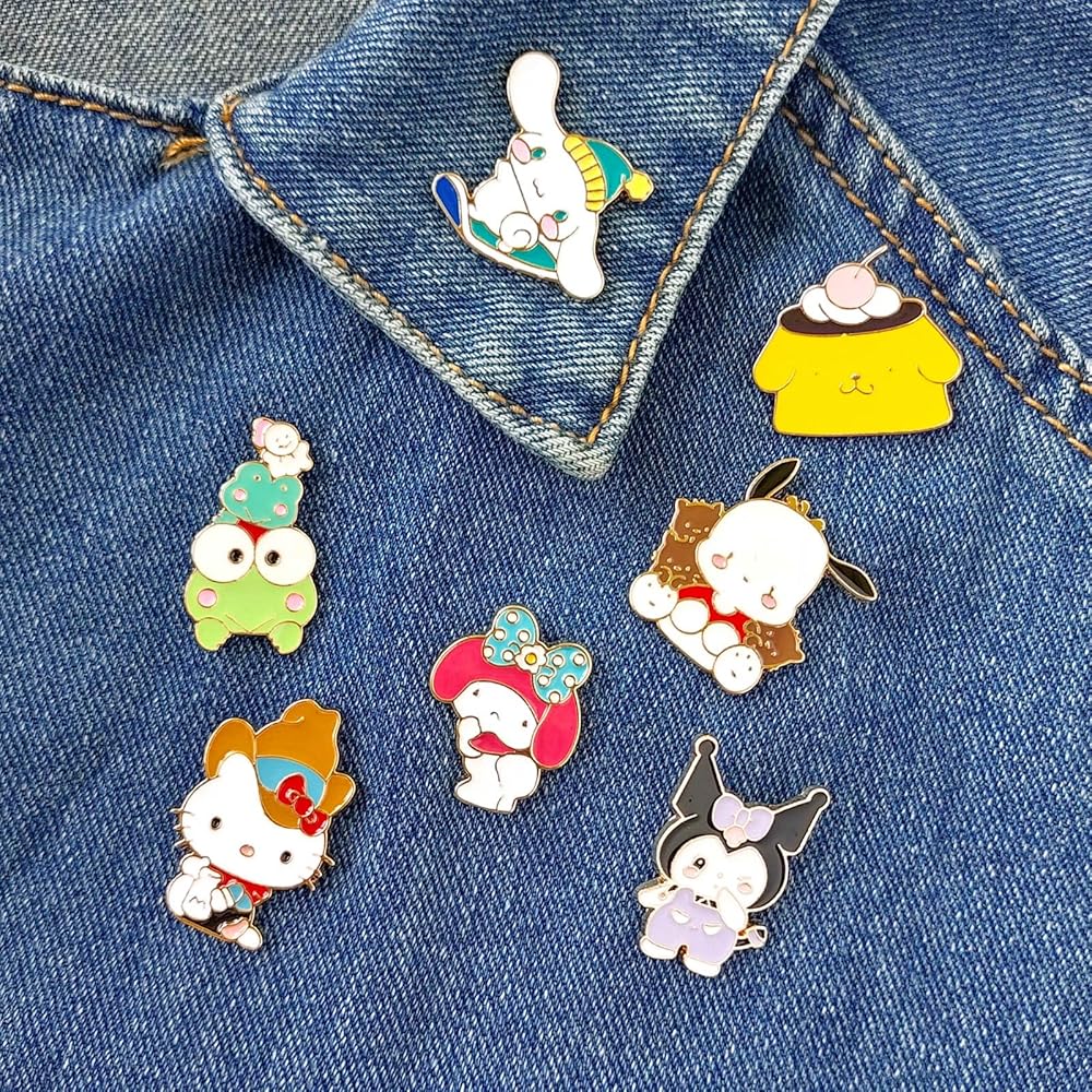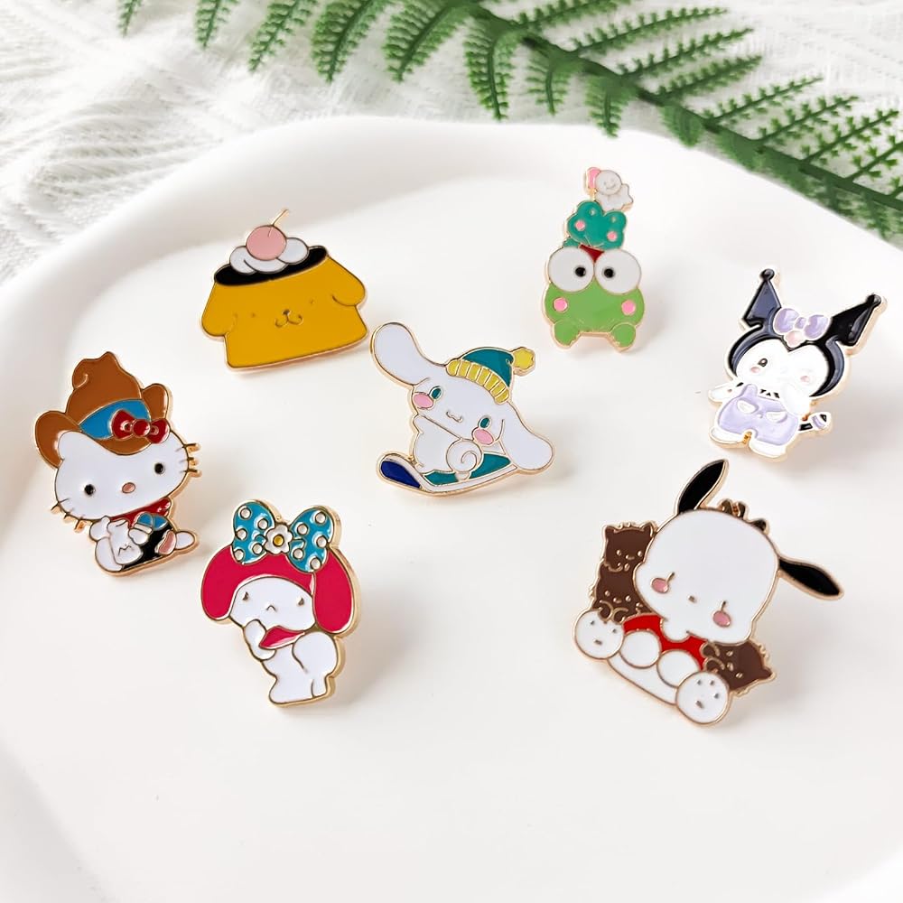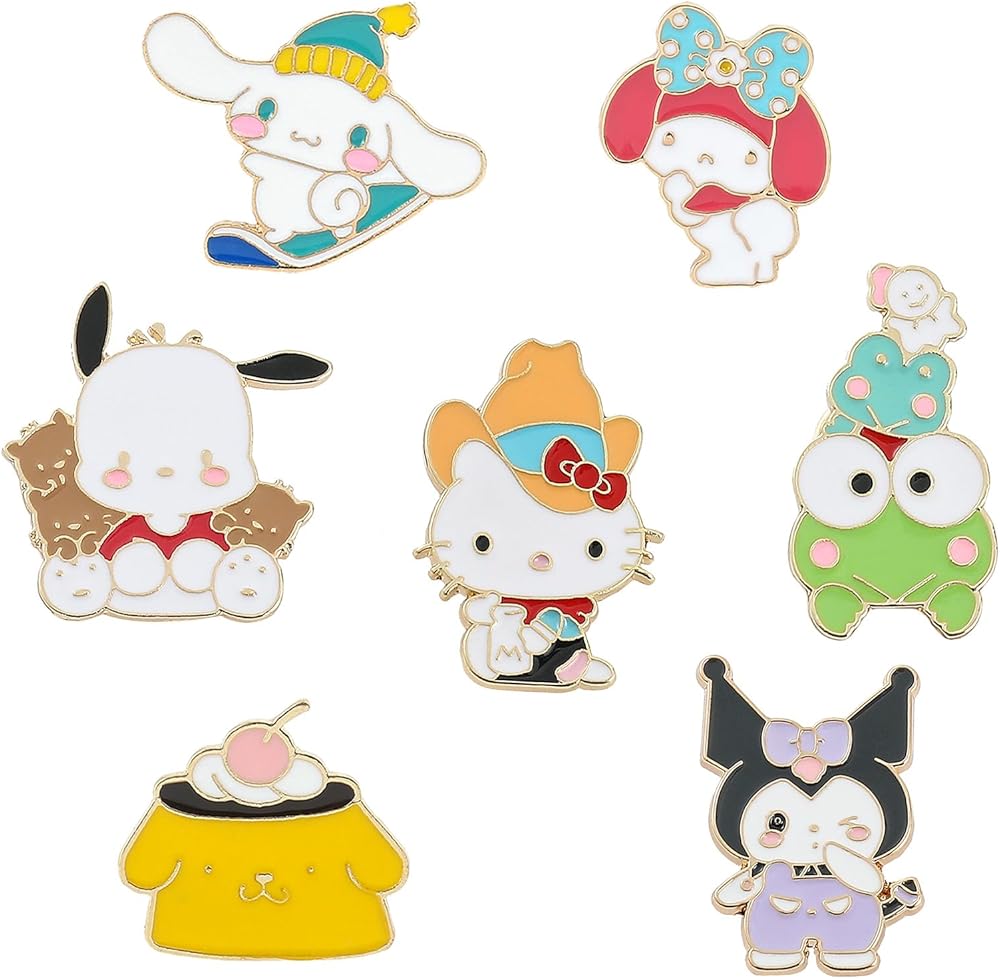 دبابيس بروش مطلية بالمينا بتصميم انيمي كيتي الياباني كهدية للزينة، بما في ذلك 7 دبابيس من المينا.
