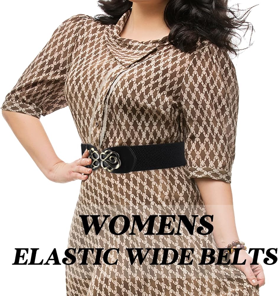 تصميم الإبزيم: تحتوي الأحزمة المطاطية للنساء على أبازيم معدنية كبيرة، وجزء من الأبازيم مصمم بنمط زهور كلاسيكي؛ مع مظهر رائع، يمكنك استخدامها لتتناسب مع فستانك والجينز وما إلى ذلك، يمكن أن تضيف لمسة من الأناقة إلى ملابسك اليومية