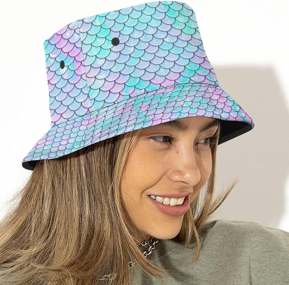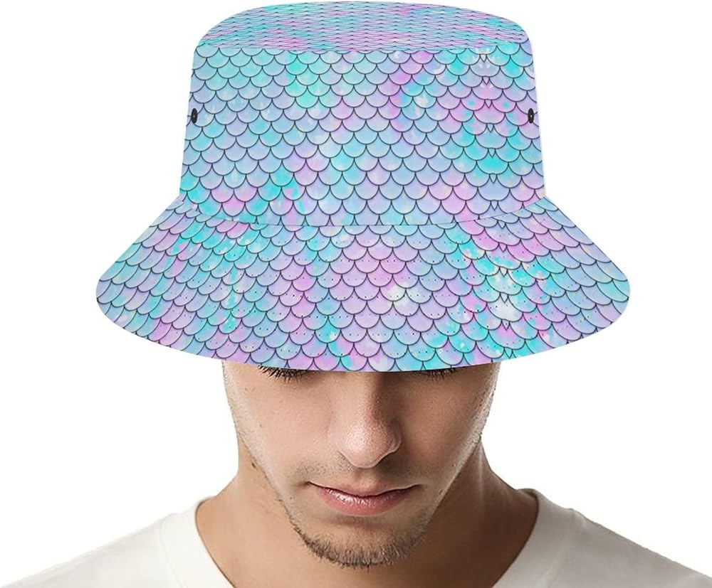 تشمل العبوة: 1 × قبعة دلو بنمط حراشف حورية البحر