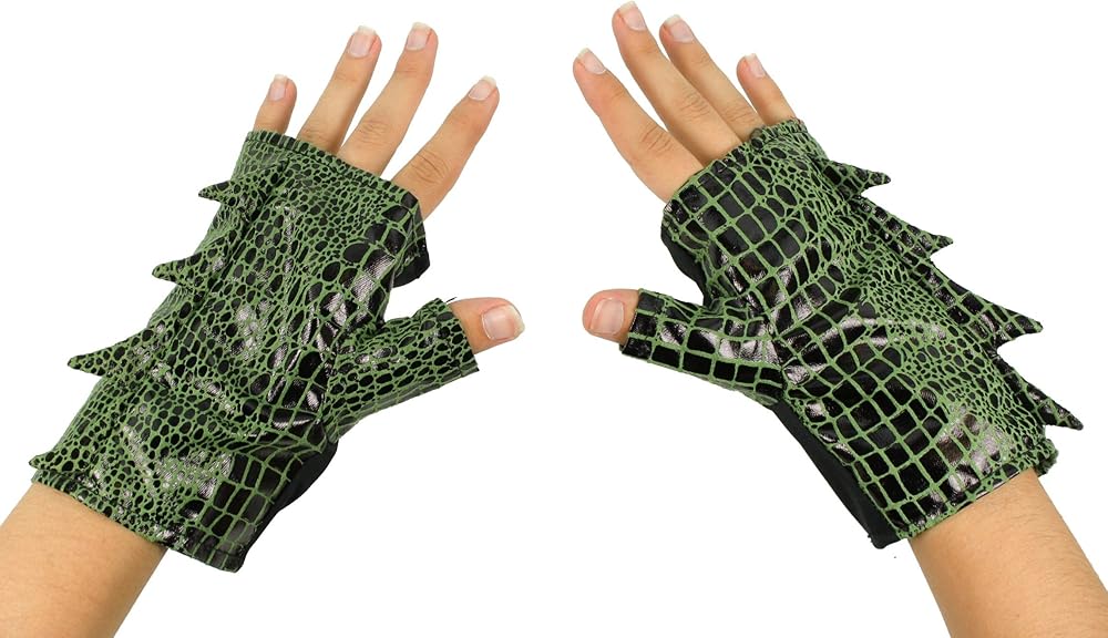 قفازات تنين تنكري قفازات بدون أصابع مع تفاصيل مقياس تنين وأشواك تنين. رائعة لأزياء الزواحف الأخرى أيضًا! اللون: كما هو موضح مقاس واحد للبالغين